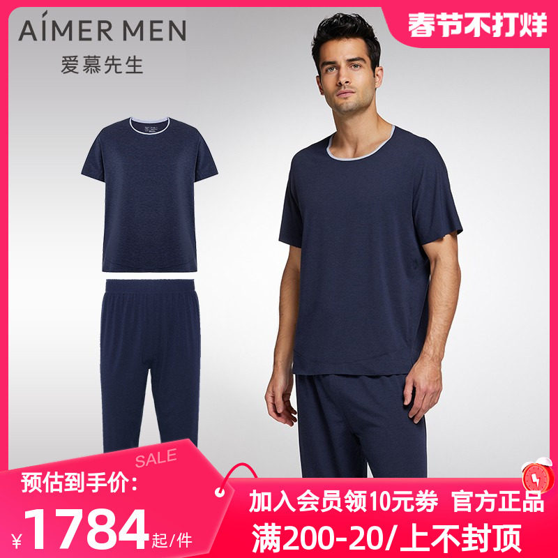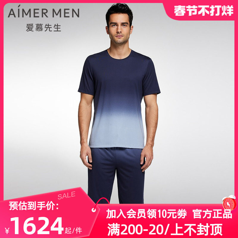爱慕先生正品春夏季圆领短袖T恤长裤男士睡衣套装家居服NS2022004