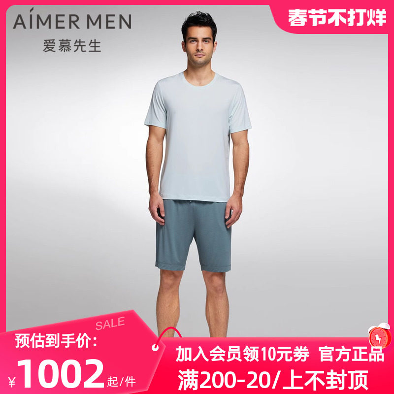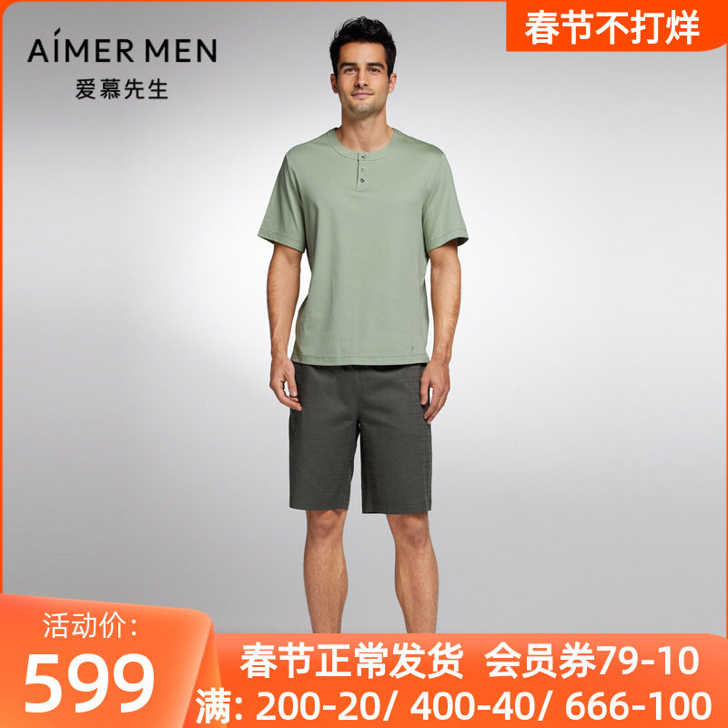 爱慕先生睡衣睡眠家居套装男士圆领套头短袖+短裤家居服NS43J711