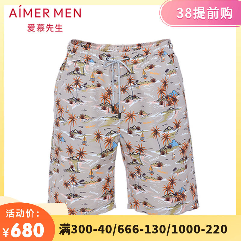 爱慕先生官方正品夏季丛林猛兽印花松紧腰沙滩裤五分短裤NS66E431