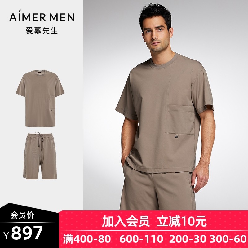 【商场同款】爱慕先生春夏陪宠不粘毛可外穿家居服男士短裤睡衣