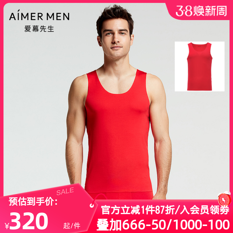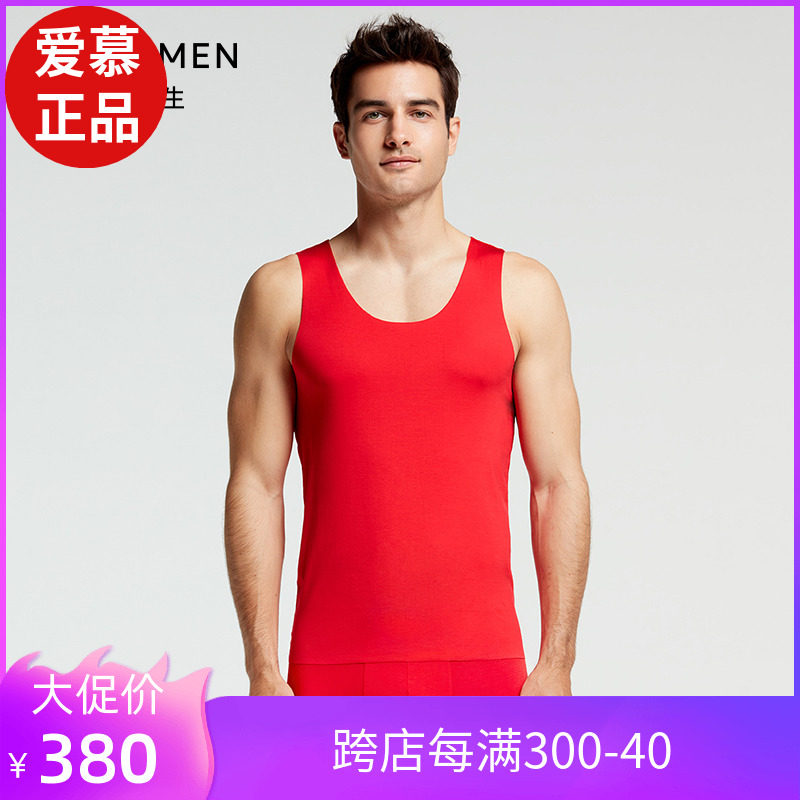 新款爱慕先生正品莫代尔无痕随心裁红本命年男士跨栏背心NS11A671