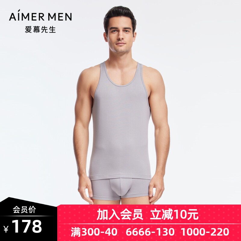 爱慕先生AIMERmen男士夏新款清仓舒适莫代尔灰色打底背心NS11A621