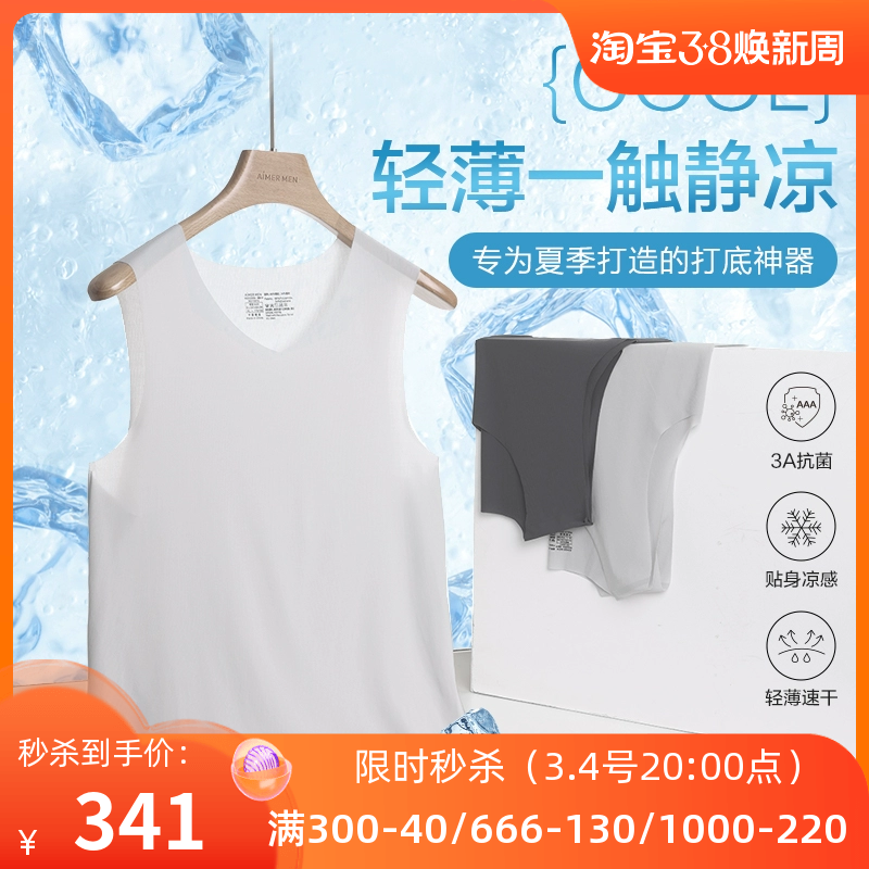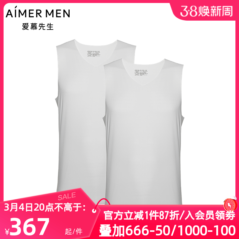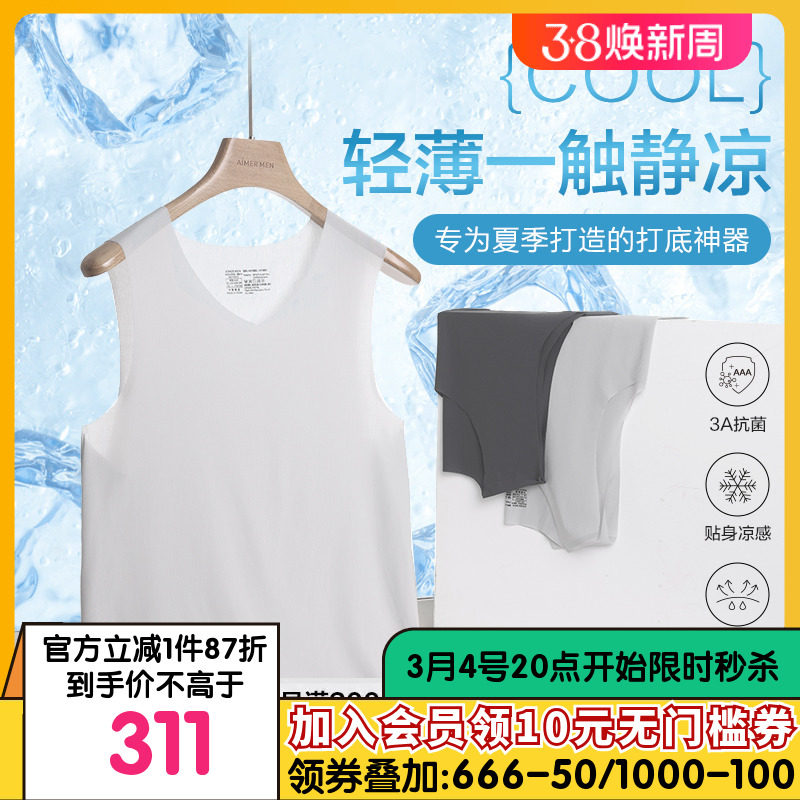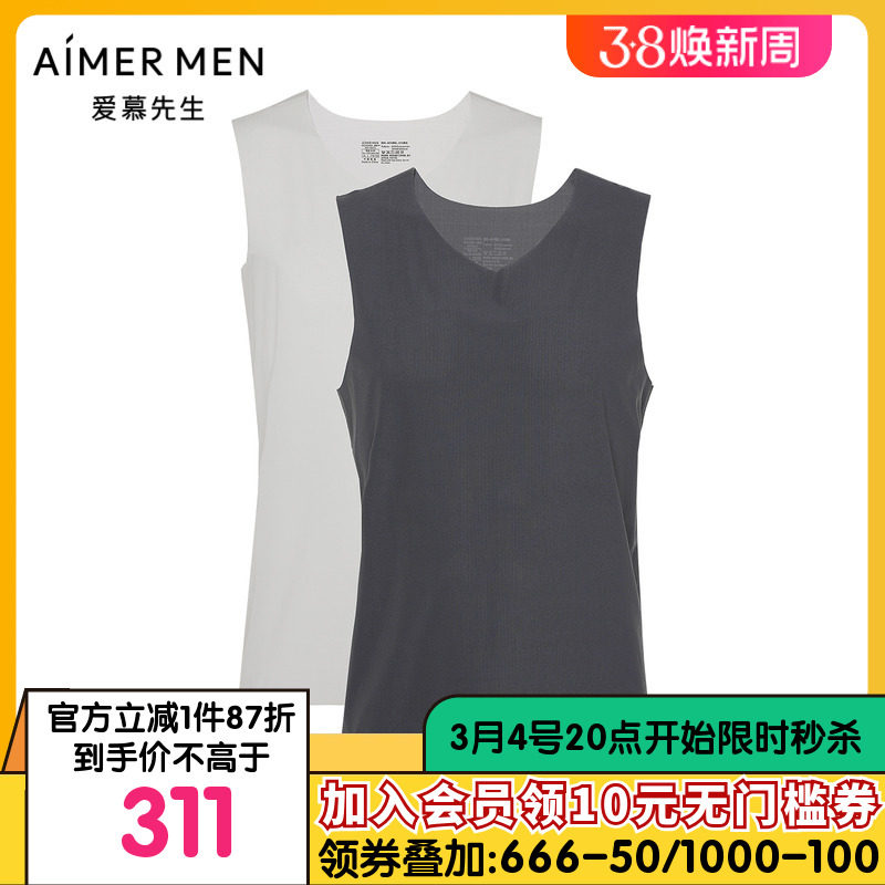 2件装 爱慕先生正品男冰丝凉感轻薄速干抗菌无痕宽肩背心NS11E572