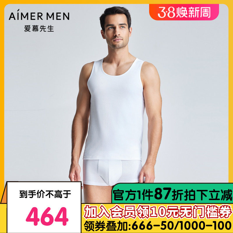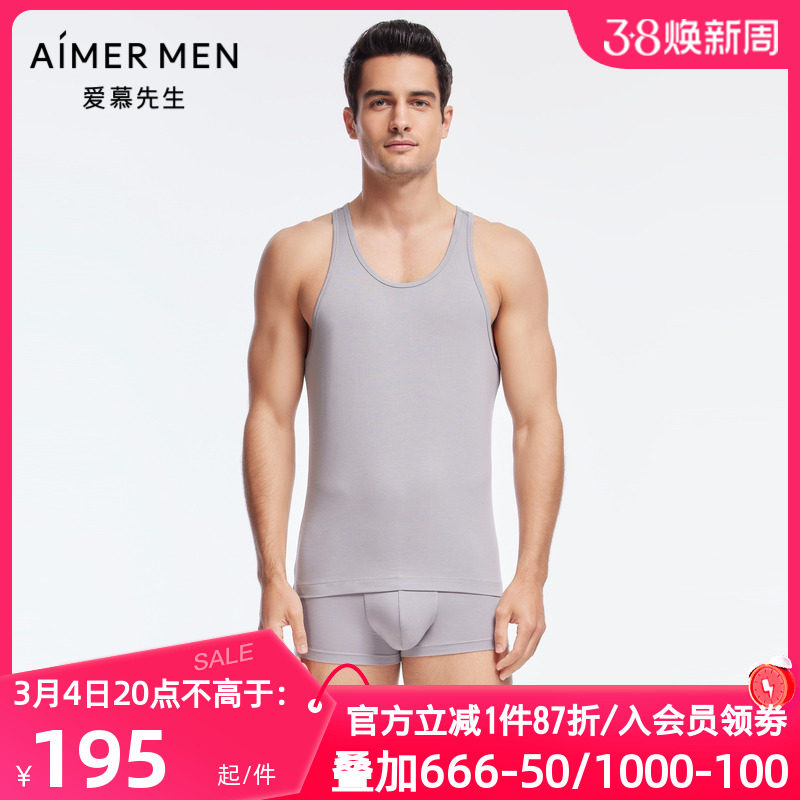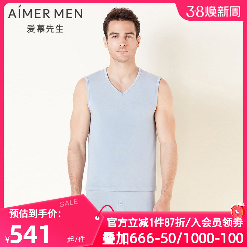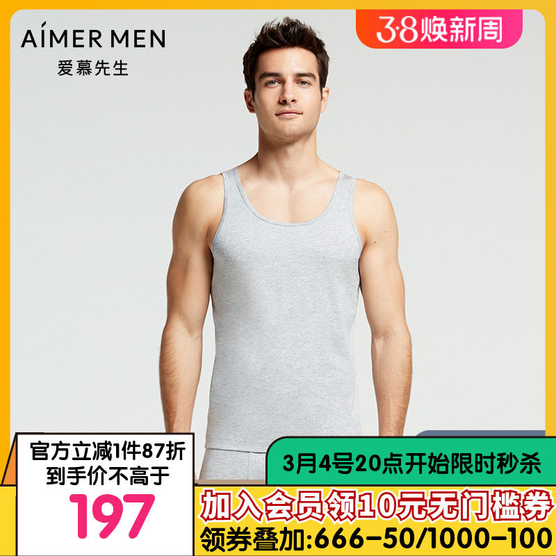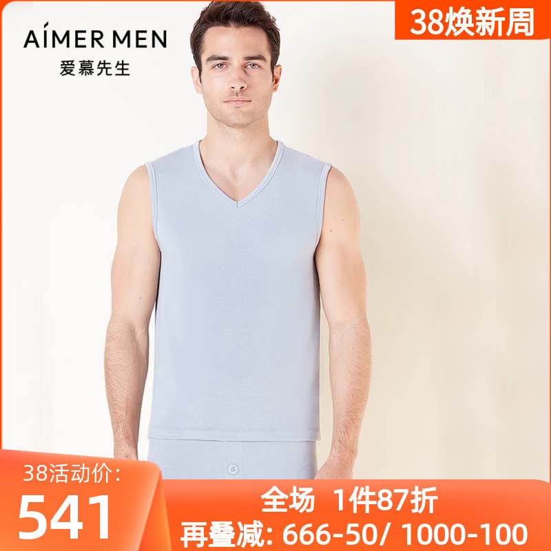 两件包 爱慕先生22AW自然棉男士窄肩背心打底上衣NS11C242