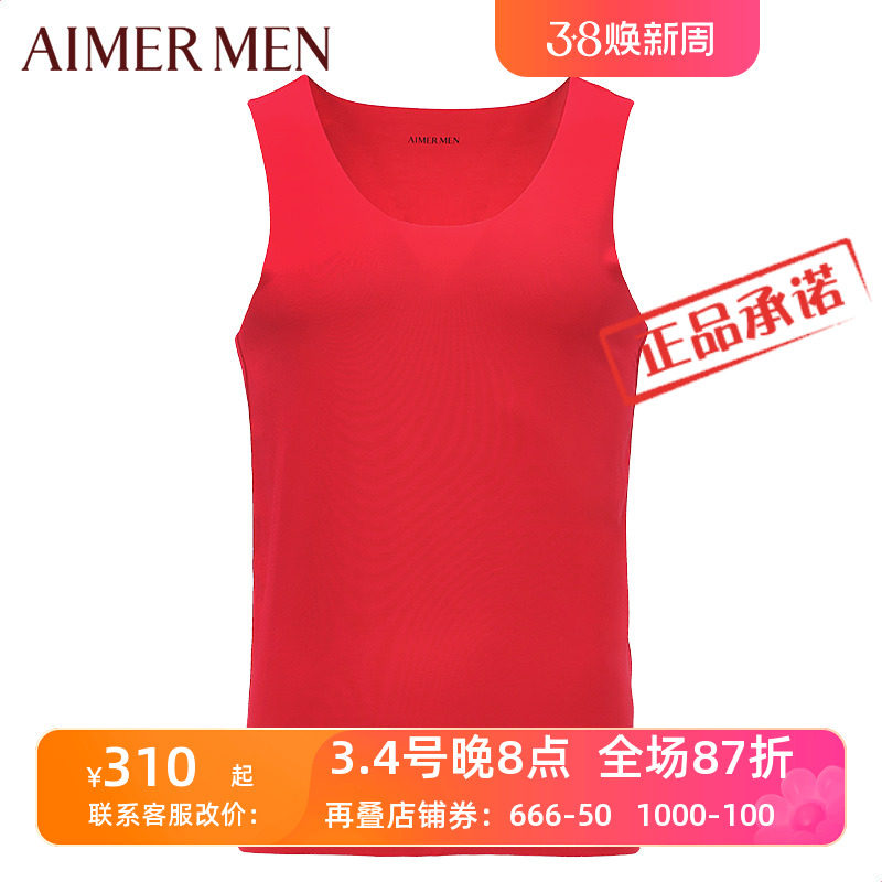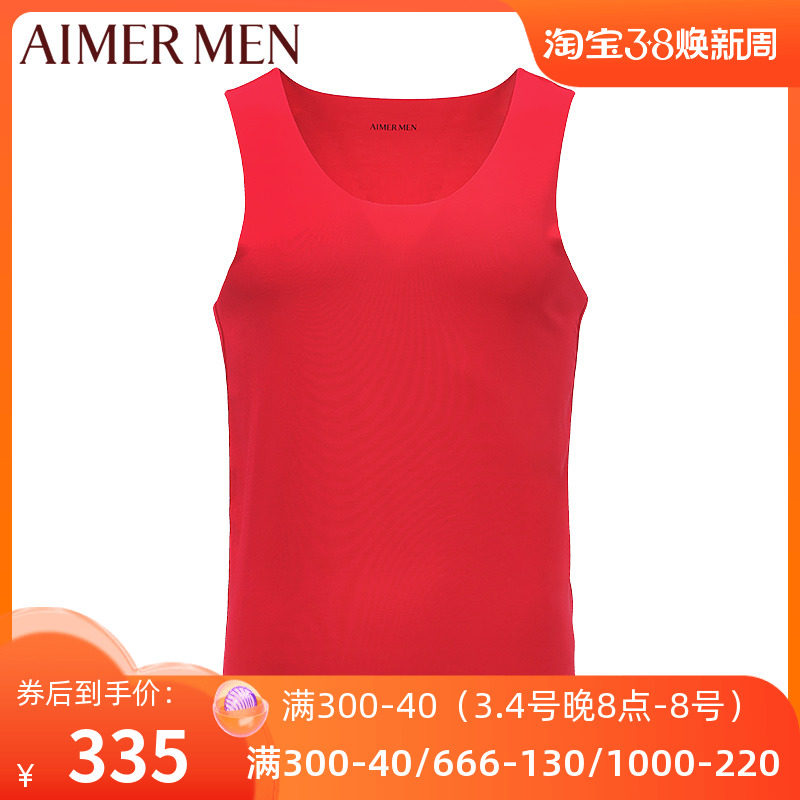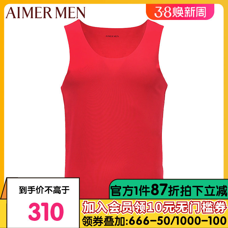 爱慕先生红色莫代尔无痕薄背心 专柜正品 男士无袖上衣 NS11A671