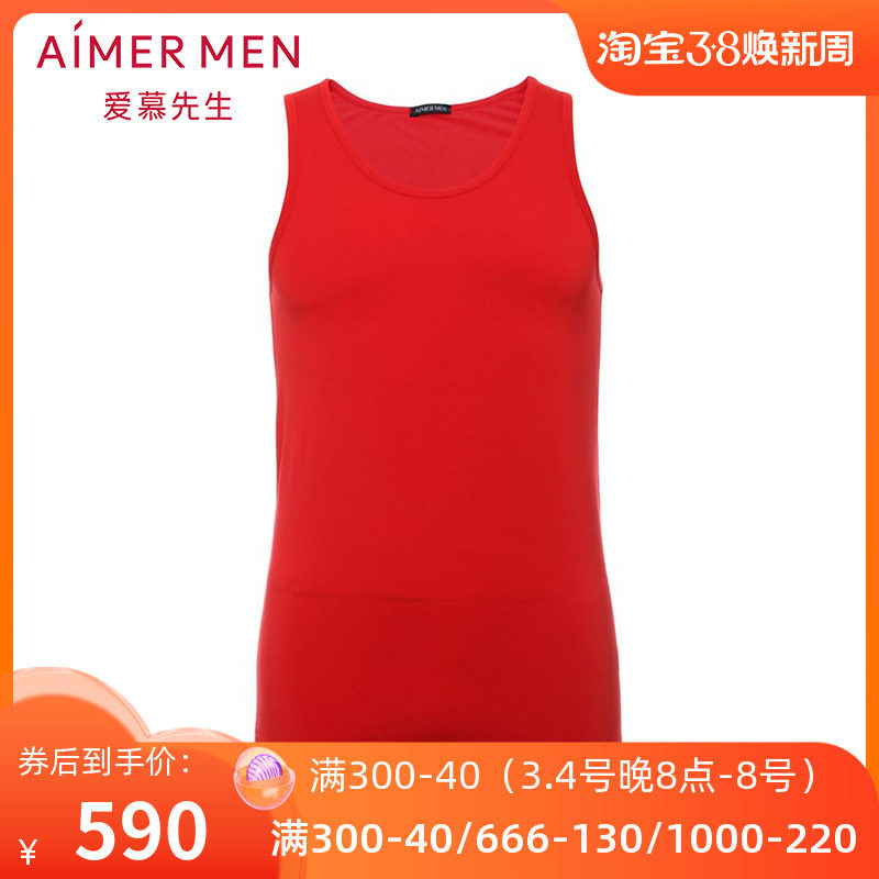 爱慕先生超细莫代尔红色本命年开运男士打底家居跨栏背心NS11354