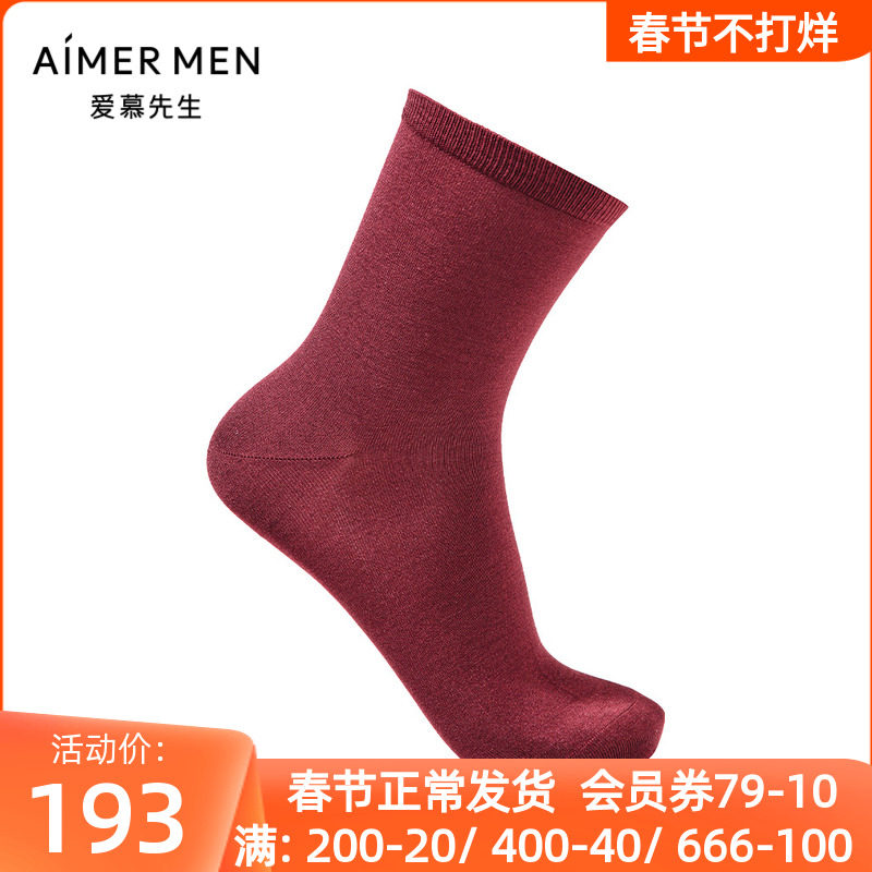 爱慕先生开运系列袜子 男士本命年红品莫代尔秋冬中筒袜NS94W014