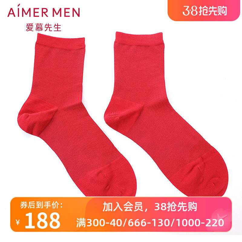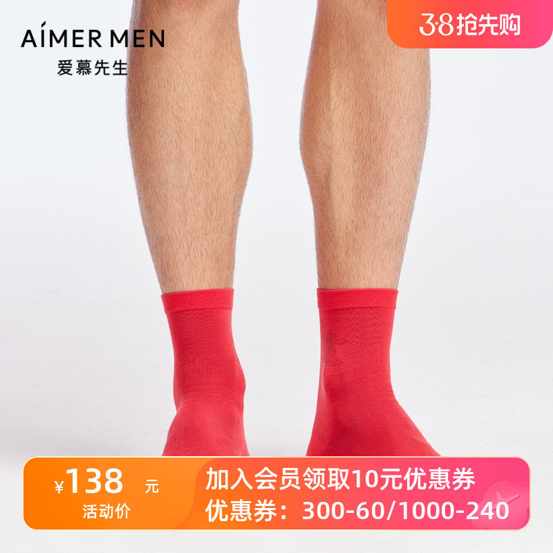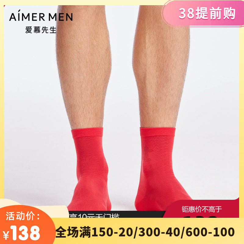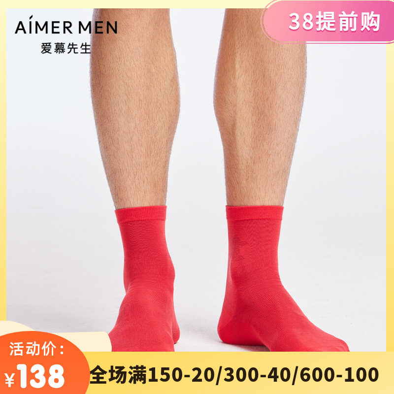 爱慕先生新款莫代尔棉开运棉袜子透气红色本命年男士短袜NS94W169