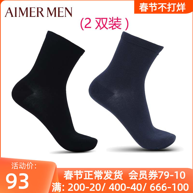 2双装aimer men爱慕先生棉质大弹力无骨编织薄款短筒袜子NS94W016