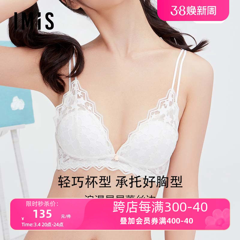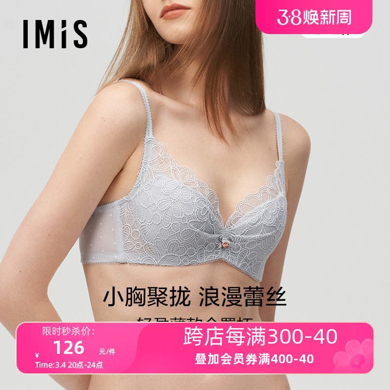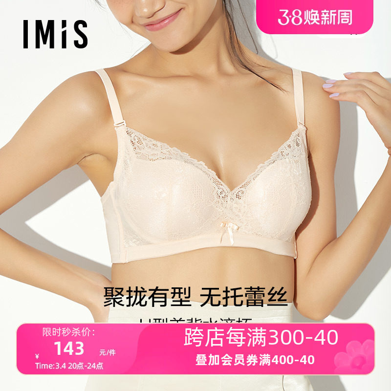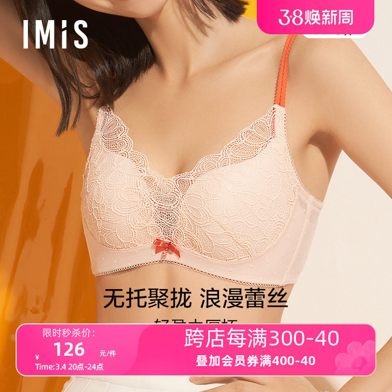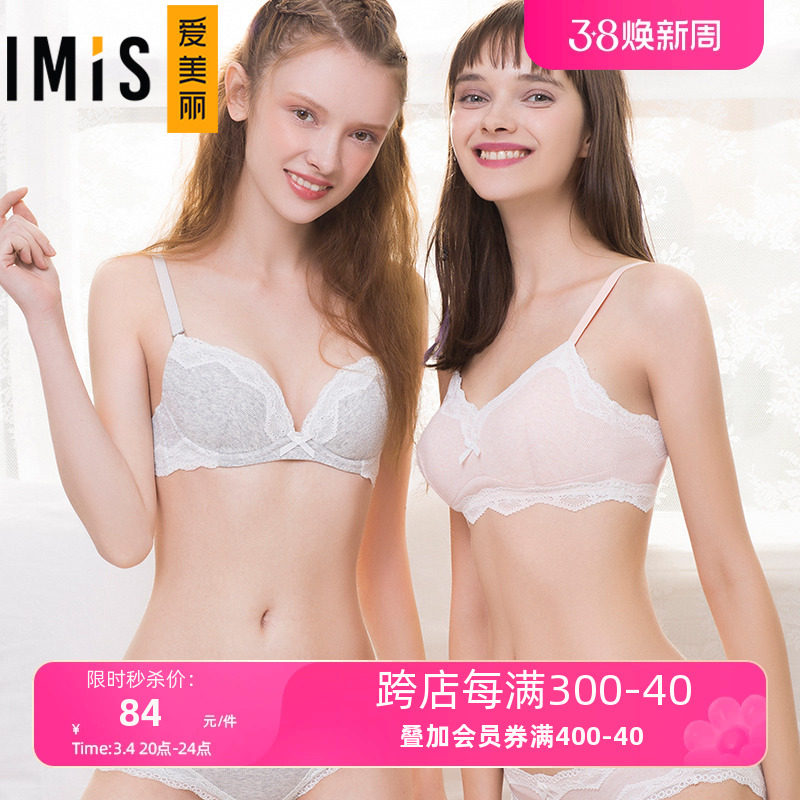 爱美丽IMIS内衣无钢圈小胸聚拢显大上托蕾丝水滴杯纯色加厚文胸罩
