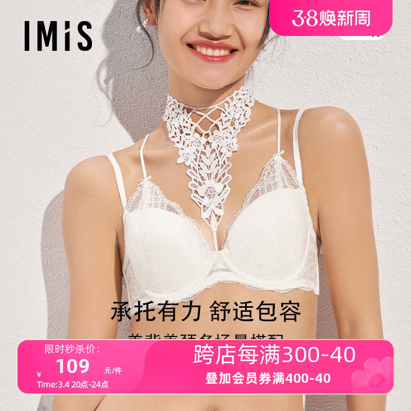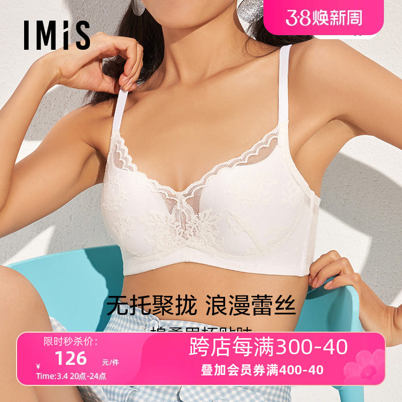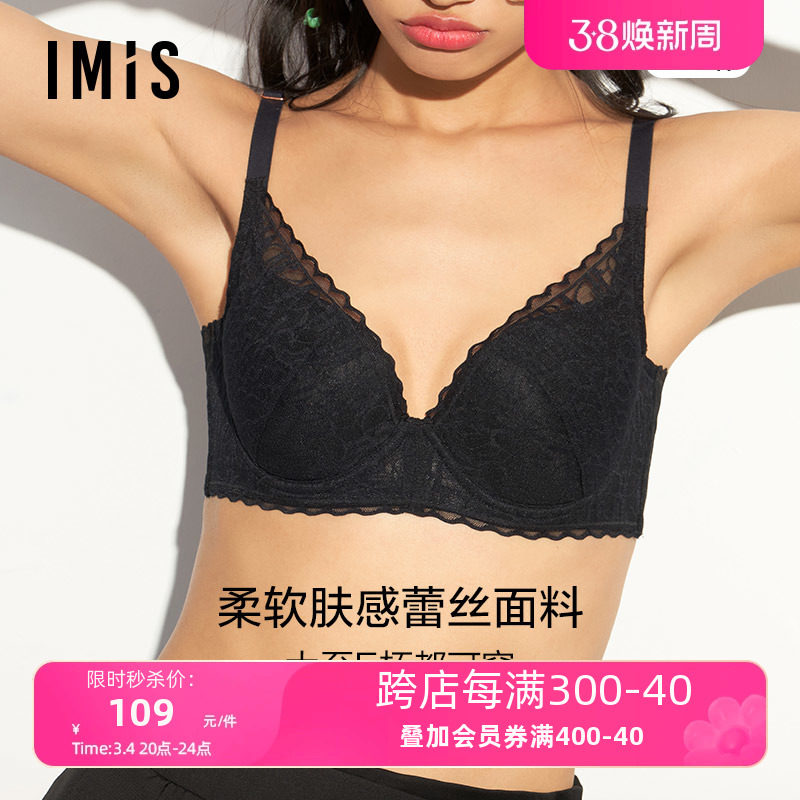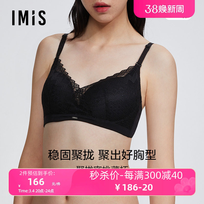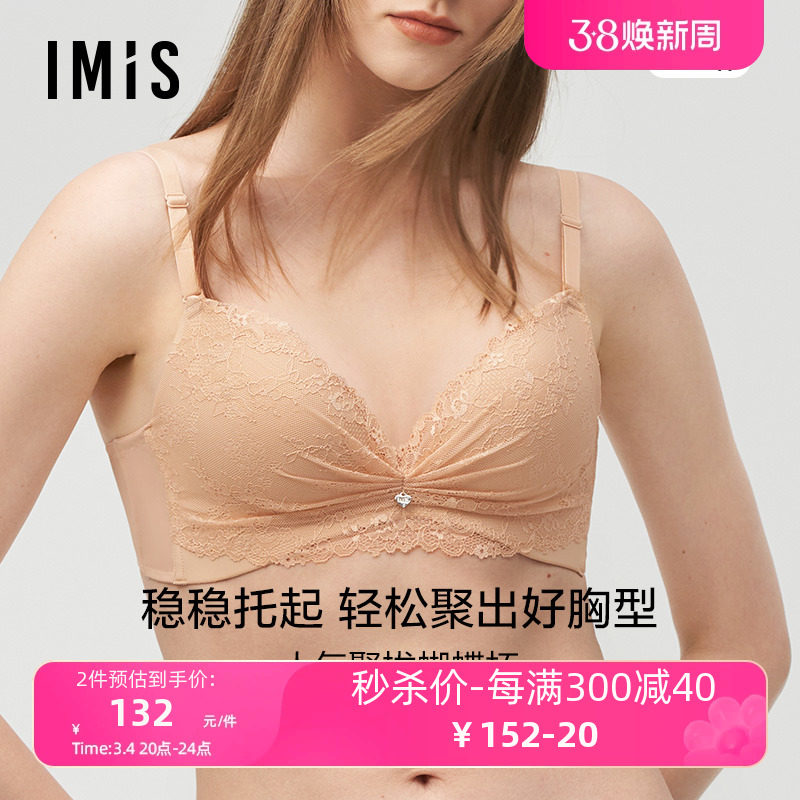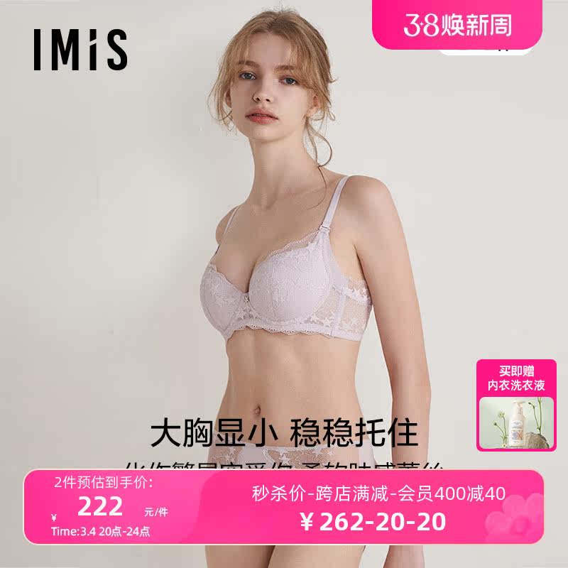 爱美丽IMIS内衣无钢圈小胸聚拢显大上托蕾丝水滴杯纯色加厚文胸罩