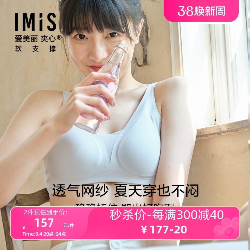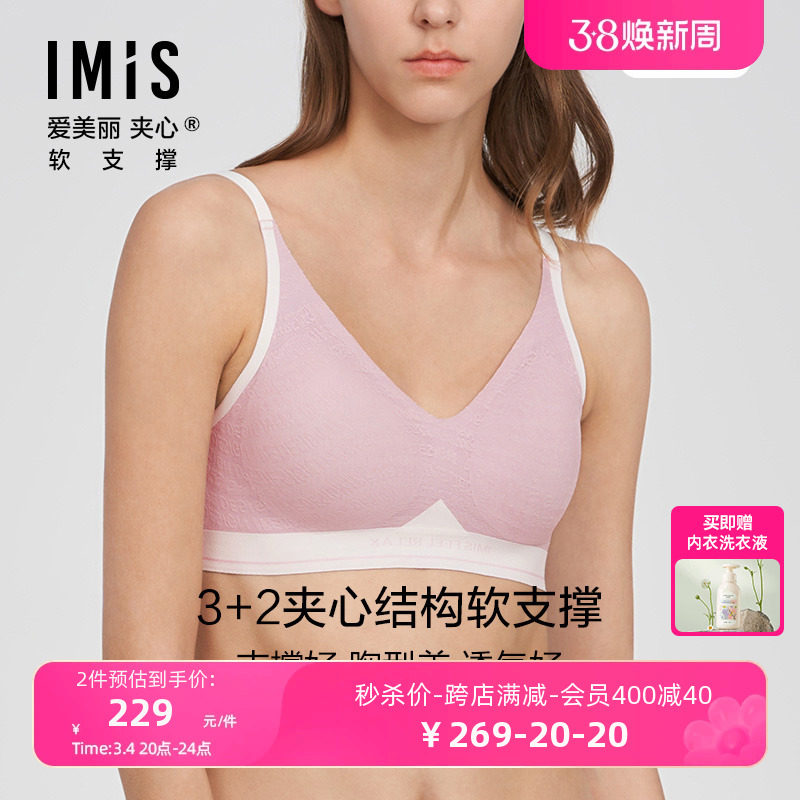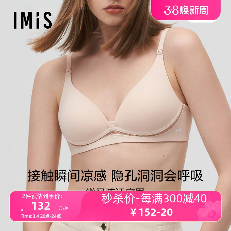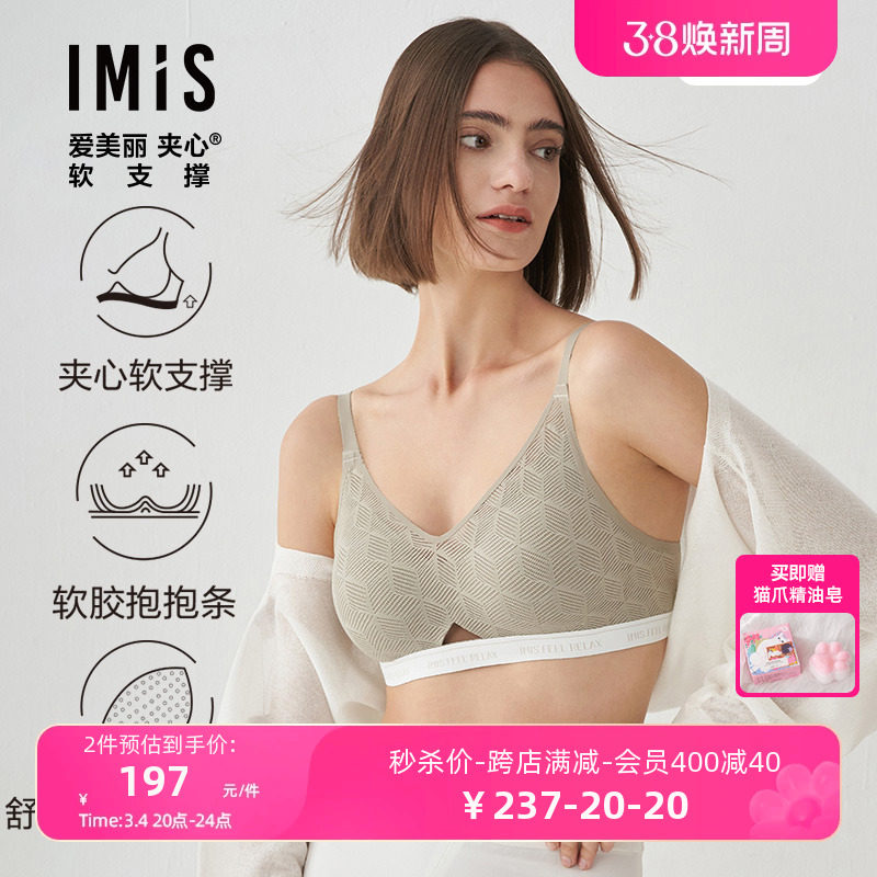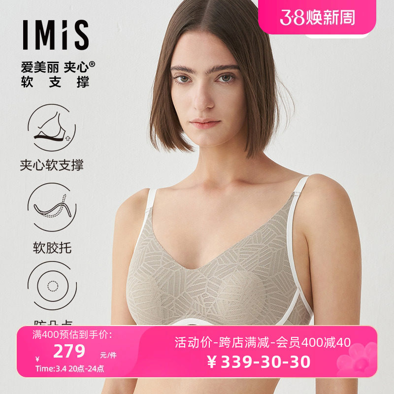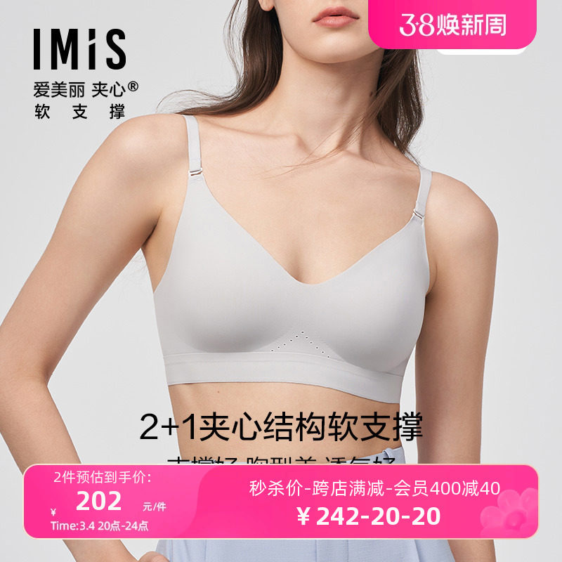 爱美丽IMIS软支撑内衣女无钢圈凉感上托透气圆圆胸薄款无尺码文胸
