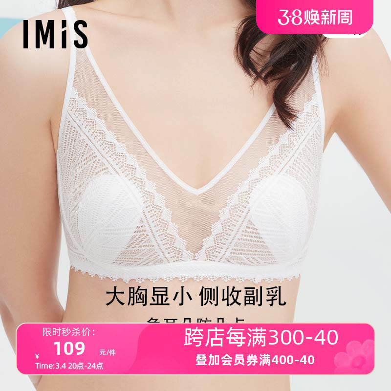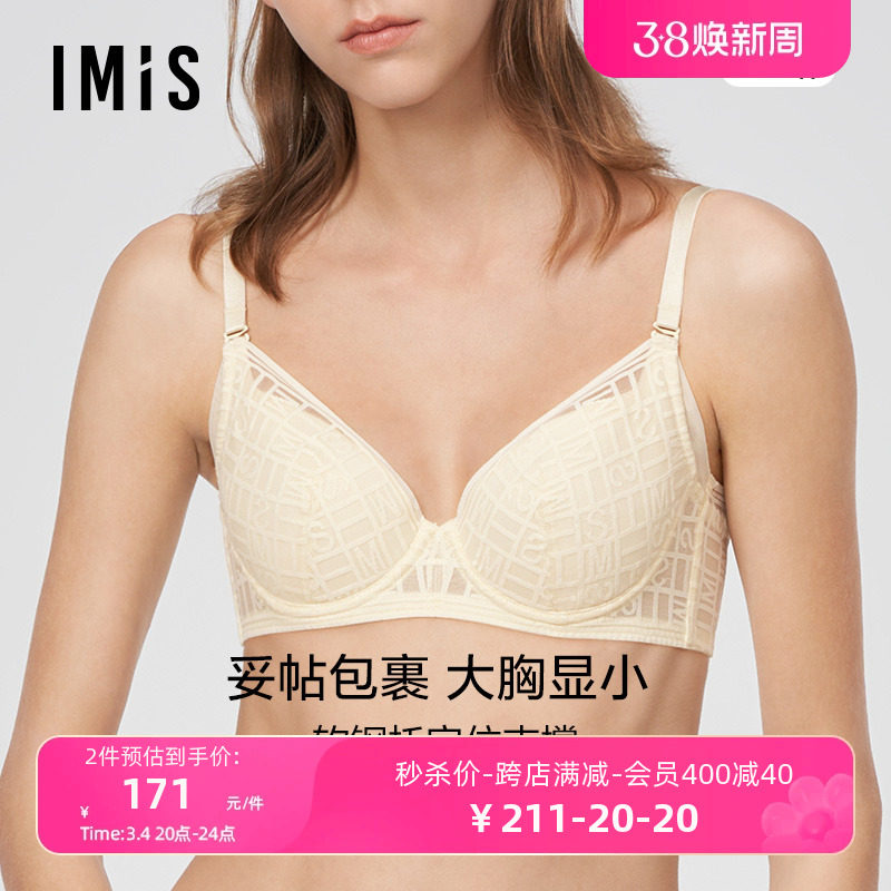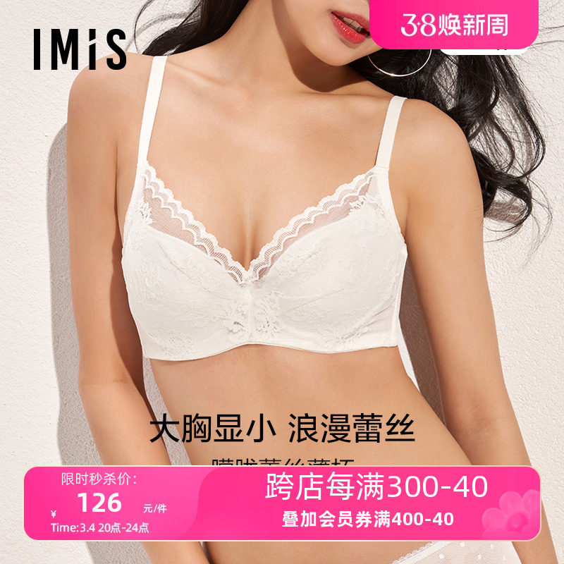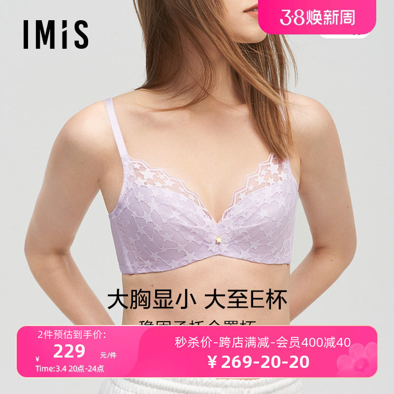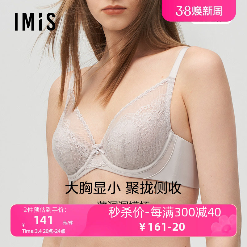 爱美丽IMIS商场内衣女大胸显小收副乳防下垂蕾丝薄款文胸IM12BGP1