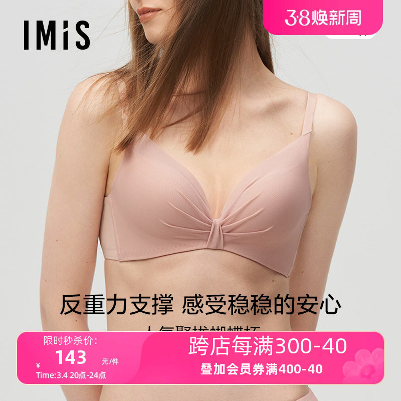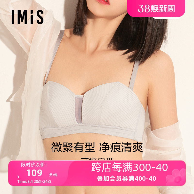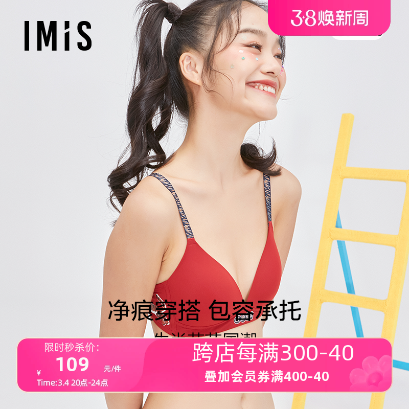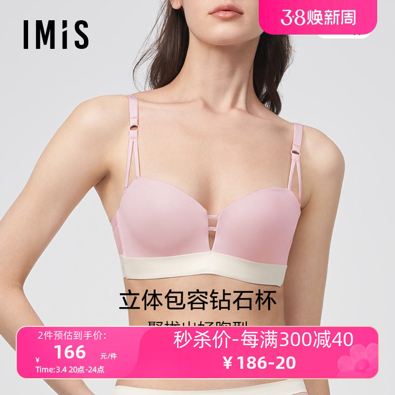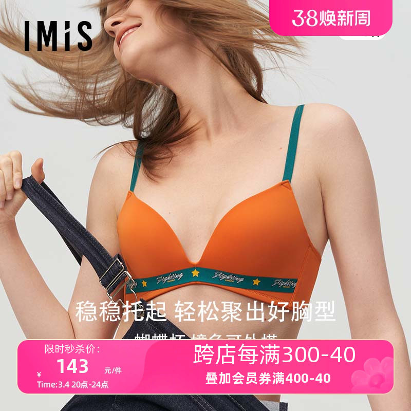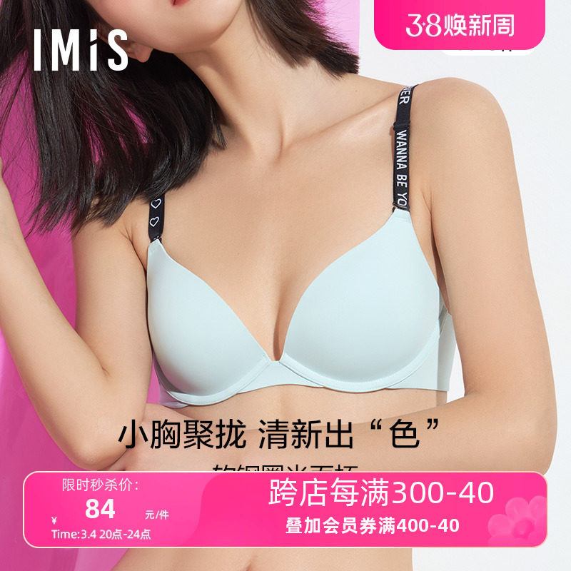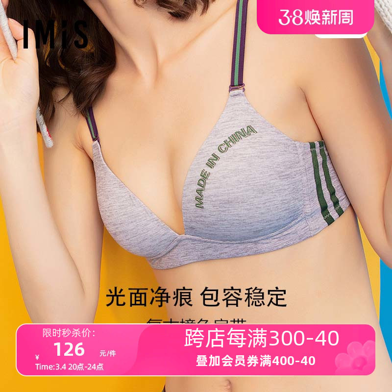 爱美丽IMIS内衣女无钢圈撞色光面字母肩带性感无痕聚拢蝴蝶杯文胸
