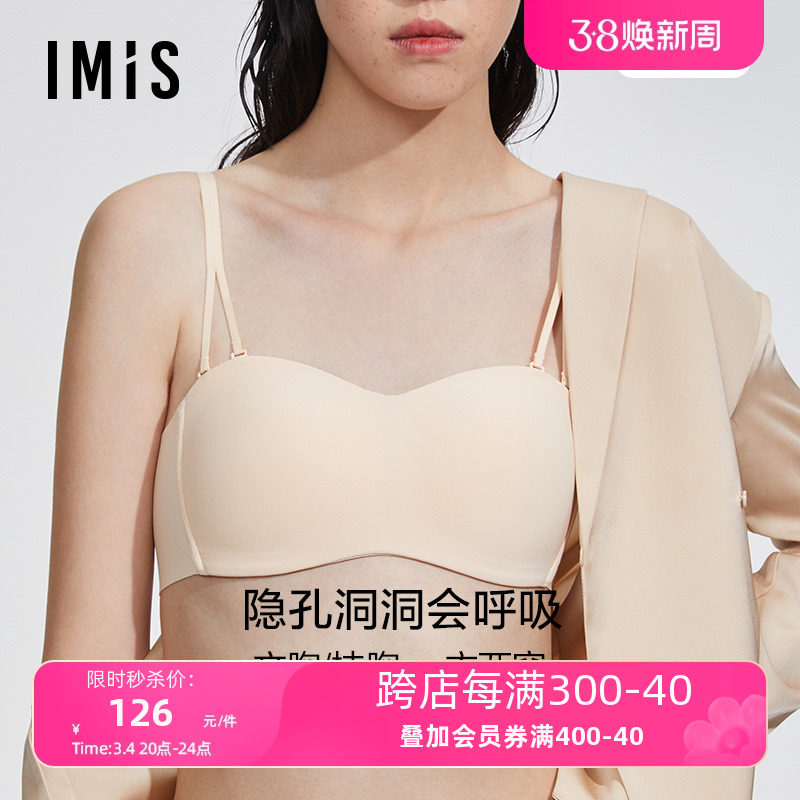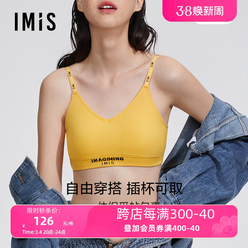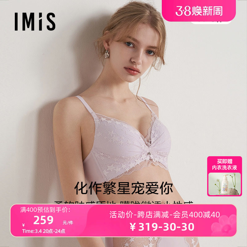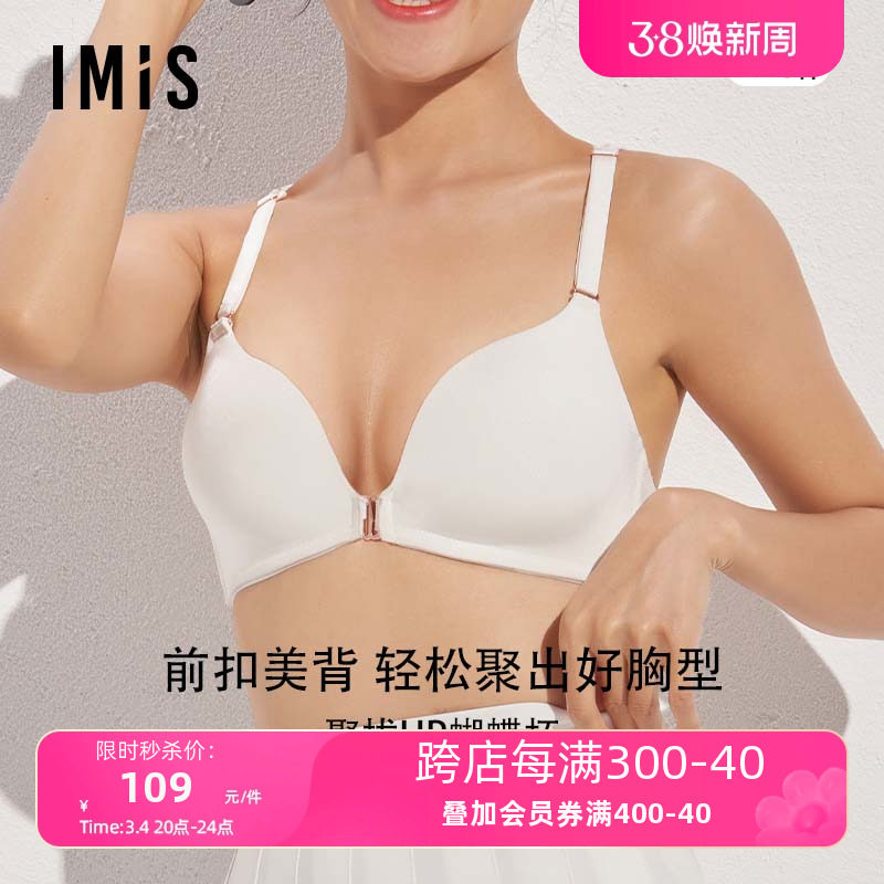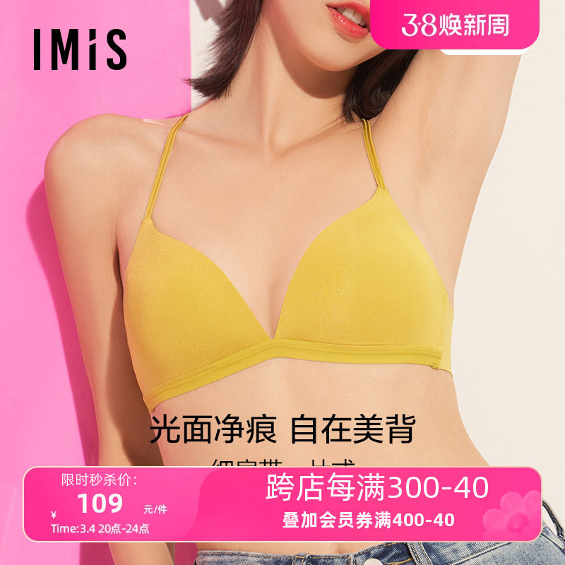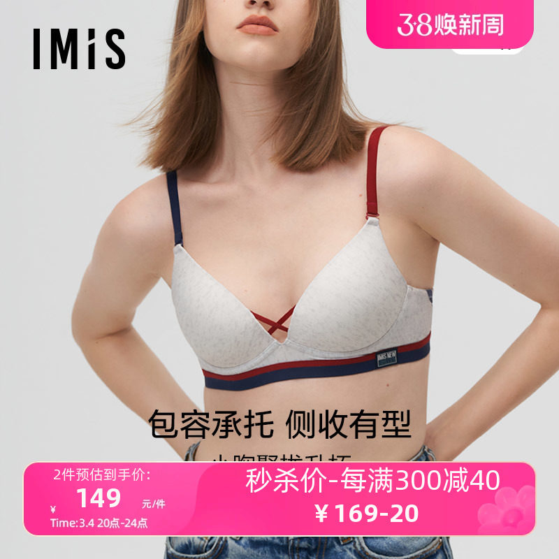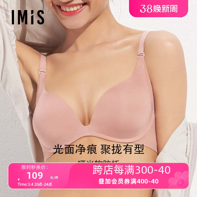爱美丽IMIS内衣女无钢圈撞色光面字母肩带性感无痕聚拢蝴蝶杯文胸