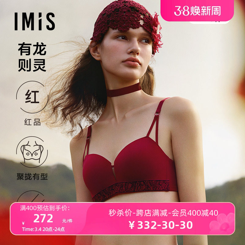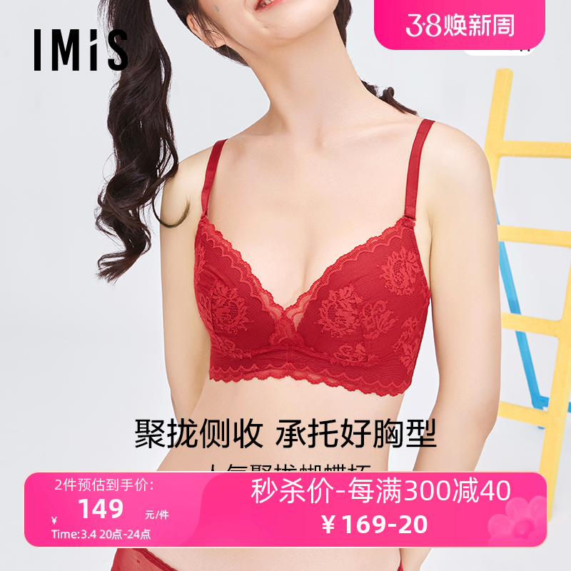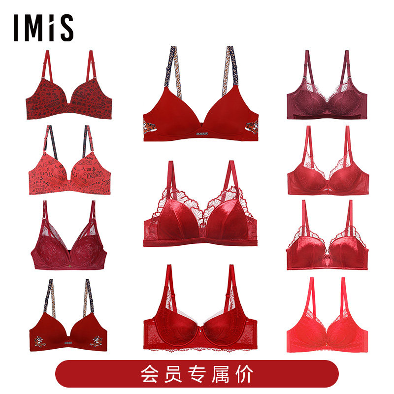 爱美丽IMIS内衣无钢圈小胸聚拢显大蕾丝红品中厚文胸IM17BAZ1