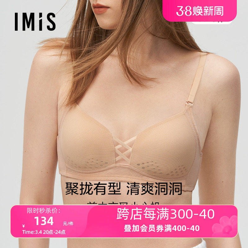 爱美丽IMIS内衣女无钢圈小胸显大聚拢上托洞洞杯薄款文胸IM17AMN1