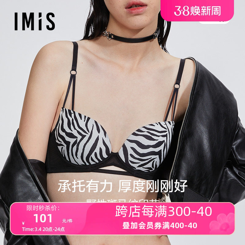 爱美丽IMIS商场内衣春秋小胸上托斑马纹钢托3/4薄杯文胸IM17BIA1