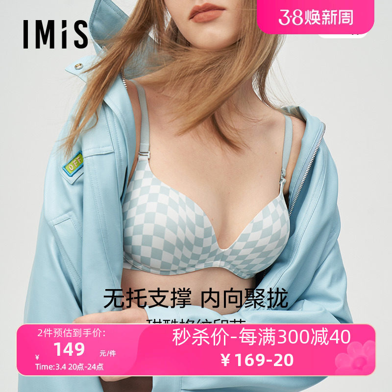 爱美丽IMIS商场内衣无托聚拢棋盘格光面上托3/4薄杯文胸IM17BIR1