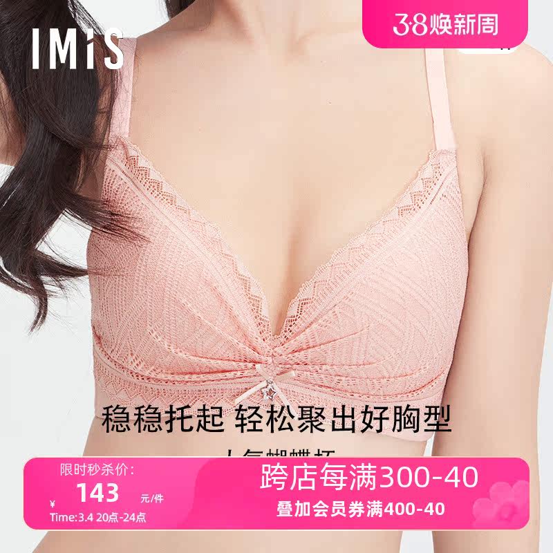 爱美丽IMIS内衣女无钢圈3/4中厚小胸聚拢蕾丝蝴蝶杯文胸IM17BPH1
