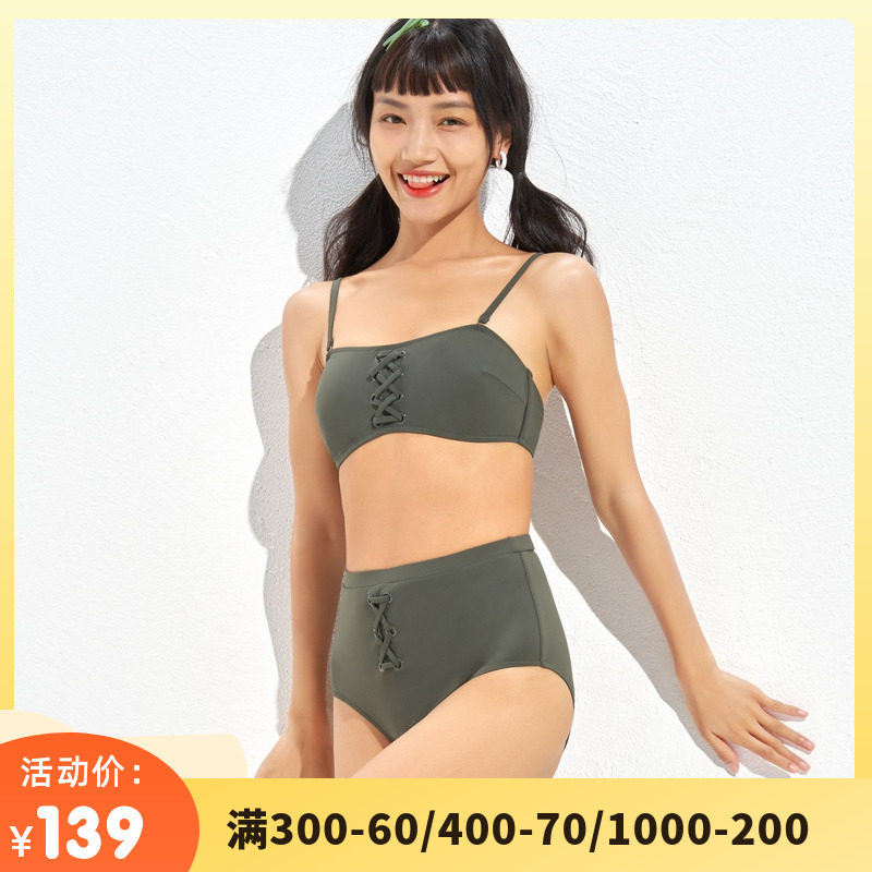 爱美丽商场运动泳装 女无钢圈高腰系带遮肉显瘦分体泳衣IM67AYA1