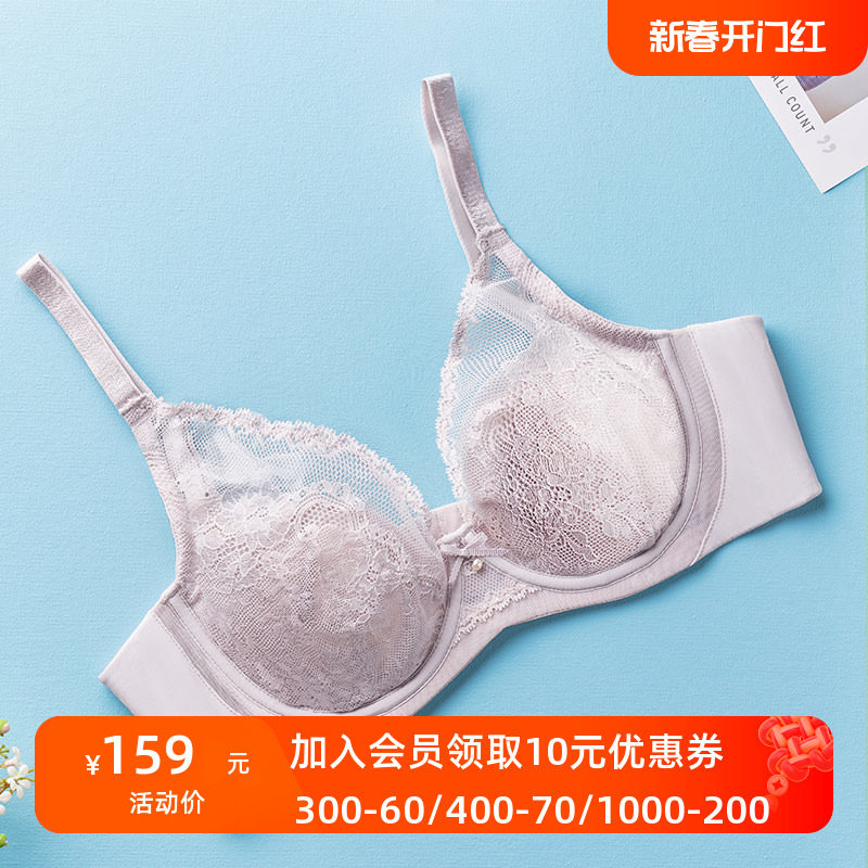 爱美丽官方正品大胸显小性感蕾丝4/4薄纱衬垫防凸点文胸IM13BAZ1