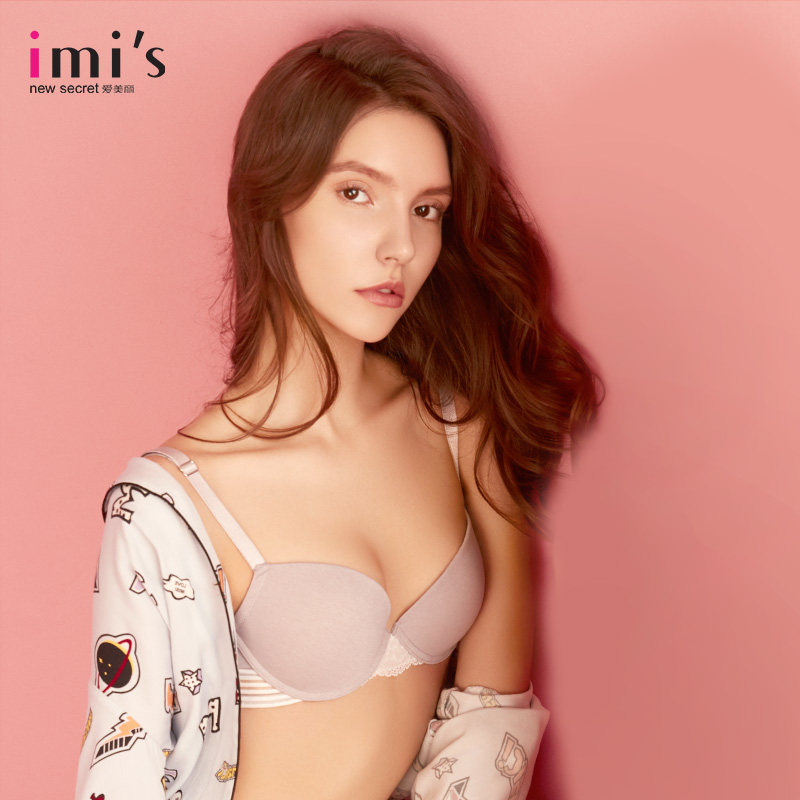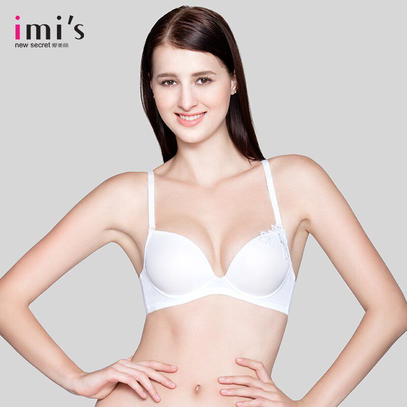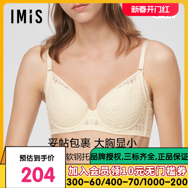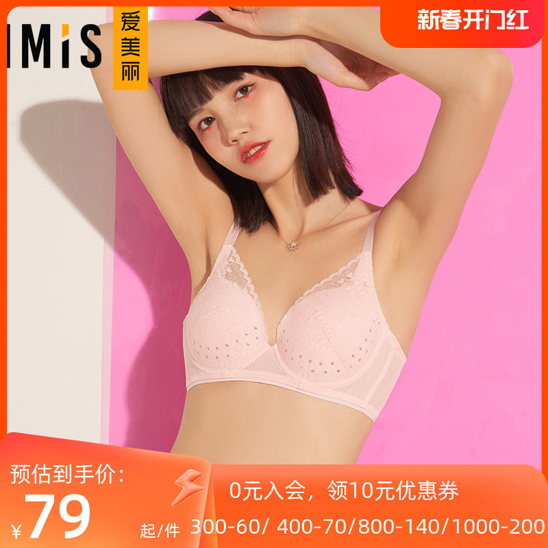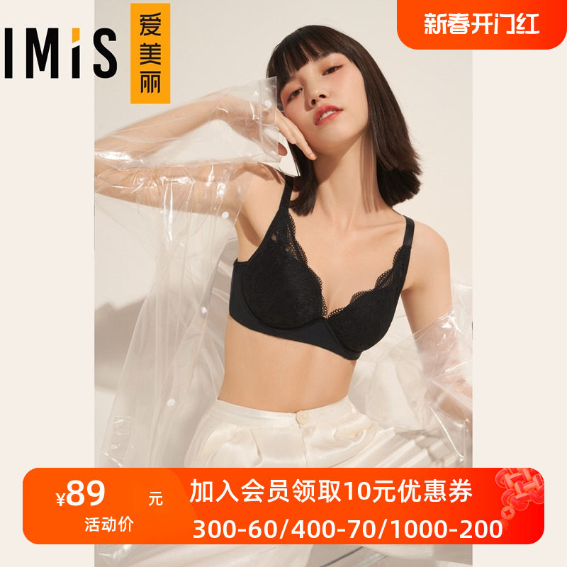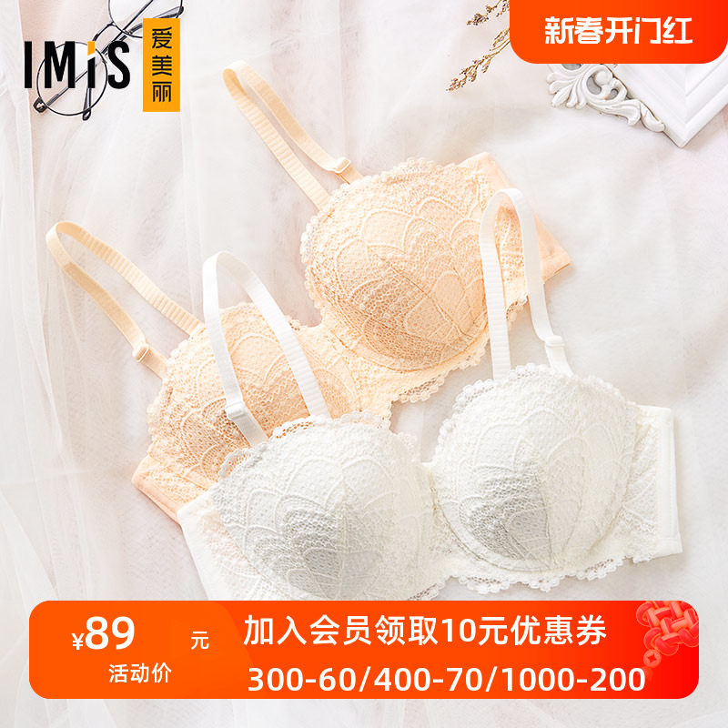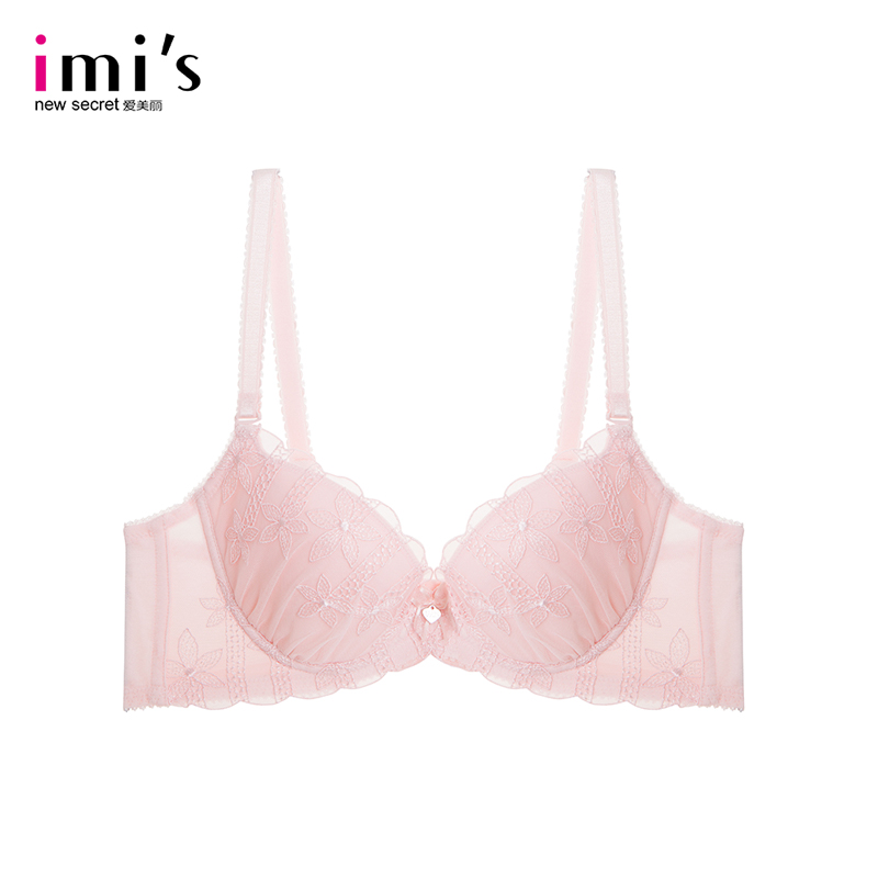 IMIS爱美丽内衣无钢圈小胸聚拢显大蕾丝纯色3/4加厚文胸IM17ARM1