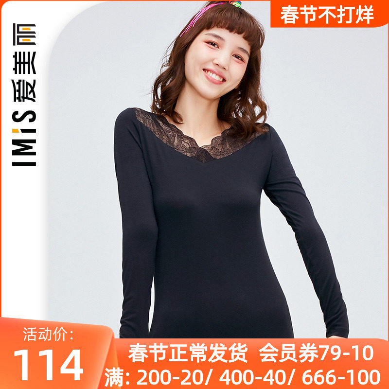 爱美丽商场保暖打底女秋冬薄款蕾丝V领套头保暖衣秋衣IM72BEV2