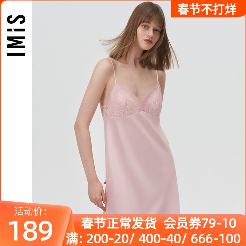 爱美丽IMIS商场睡衣女新款丝滑性感蕾丝刺绣丝质吊带睡裙IM44BKF1