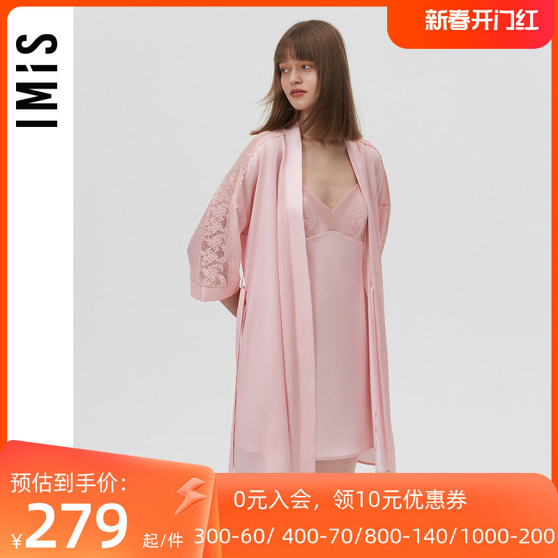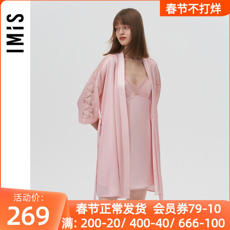 爱美丽IMIS商场睡衣女秋冬丝感刺绣蕾丝开衫七分袖睡袍IM48BKF1
