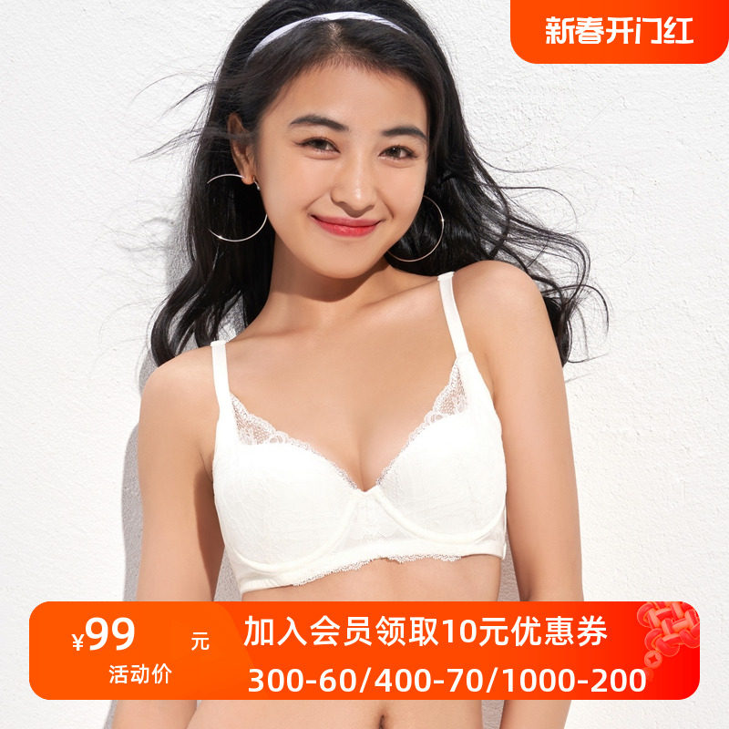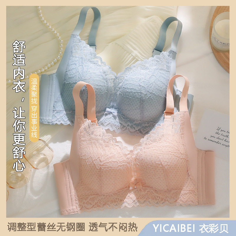 衣彩贝【聚拢蕾丝】内衣女小胸聚拢无钢圈调整形性感收副乳文胸罩