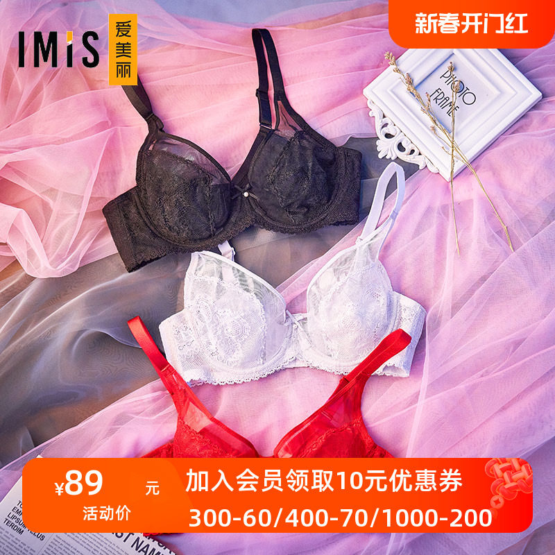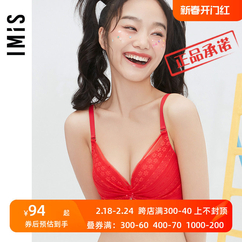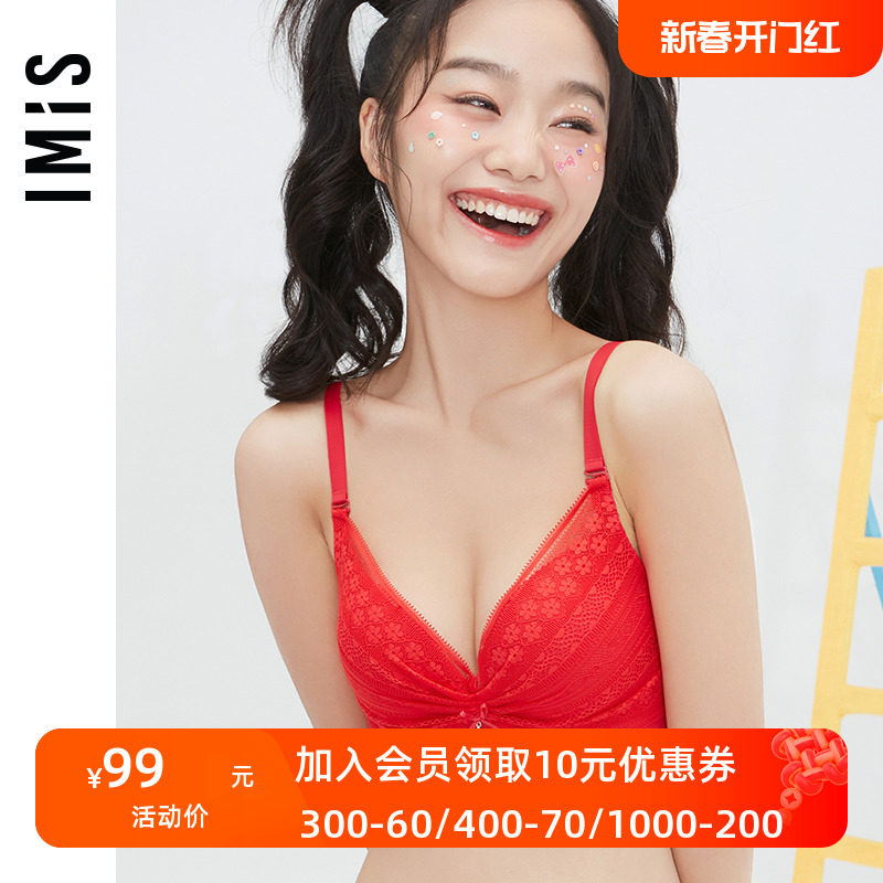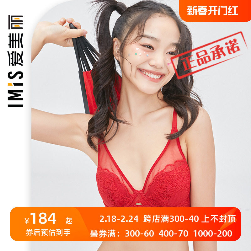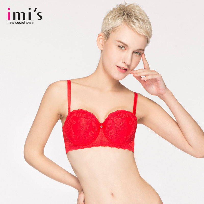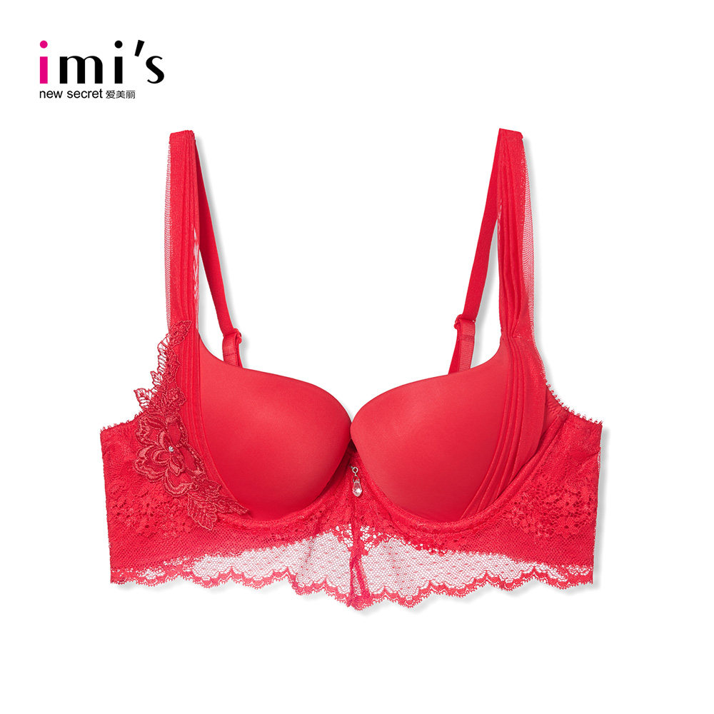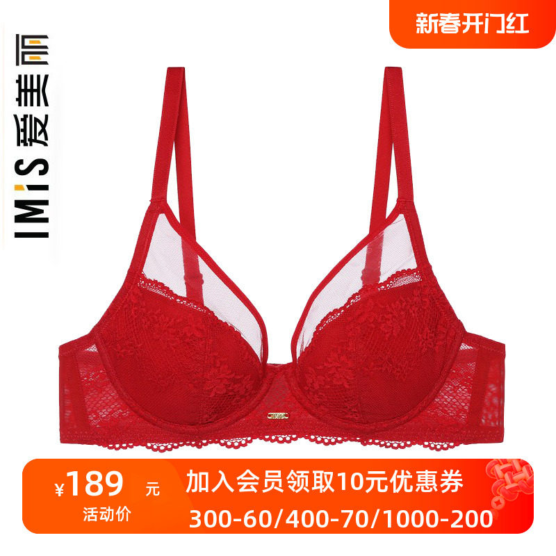IMIS爱美丽女士内衣小胸聚拢显大美背蕾丝红品3/4中厚文胸IM11PE1