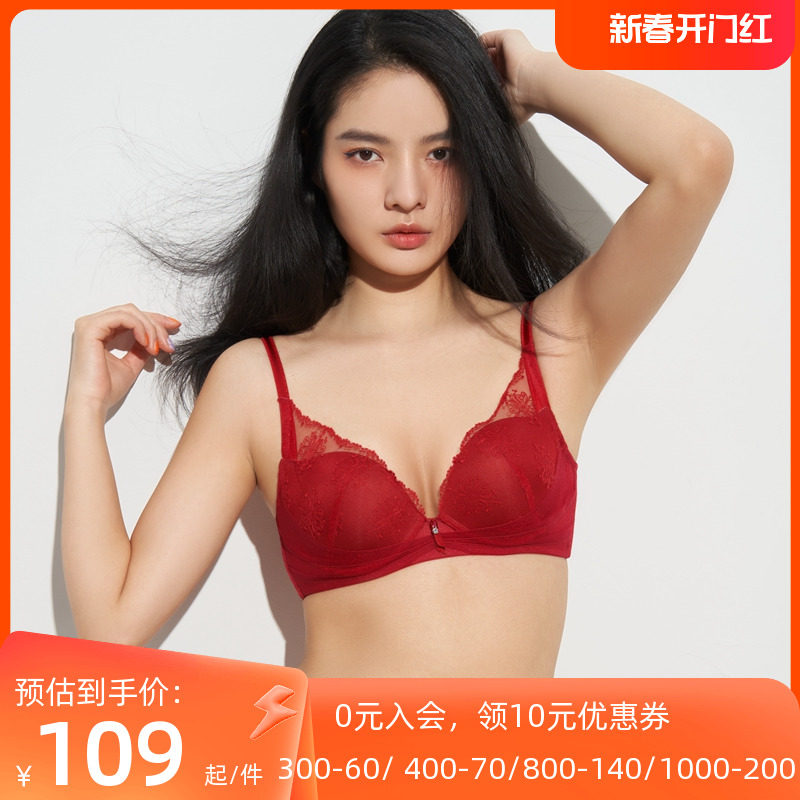 爱美丽内衣红色本命年婚庆大胸显小真丝内杯蕾丝薄杯文胸IM12BGP1