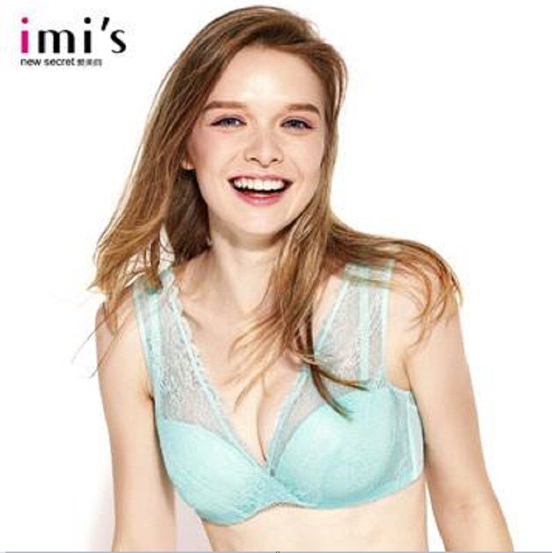 IMIS爱美丽女士内衣无托大胸显小蕾丝羽棉薄杯三角杯文胸IM16AMS1