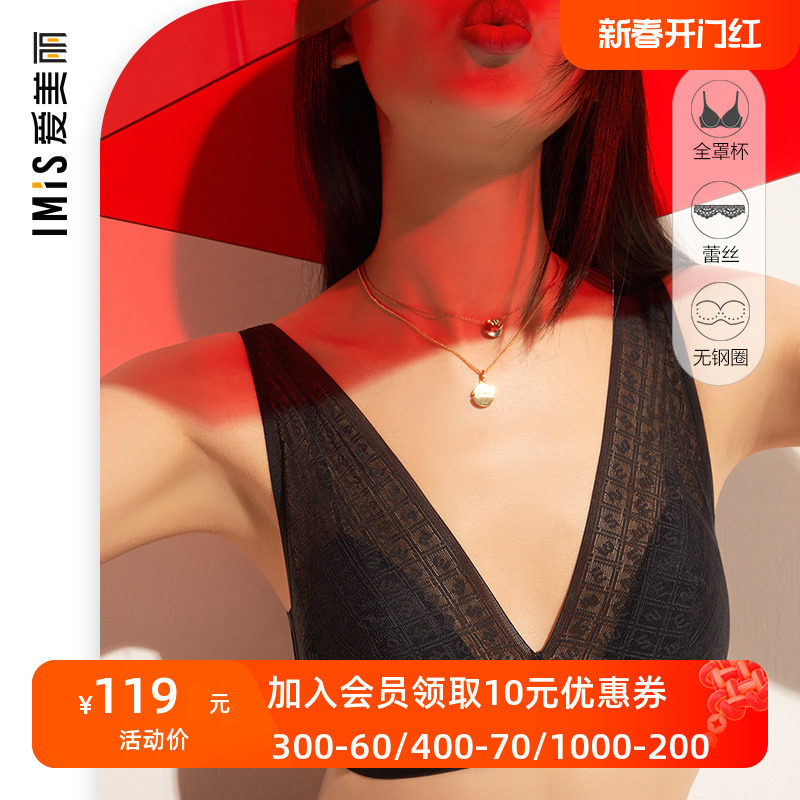 IMIS爱美丽内衣性感蕾丝全罩杯薄款深v调整聚拢文胸IM11ACJ1
