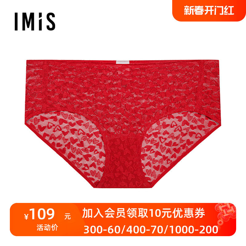 爱美丽正品女士款刺绣蕾丝红色本命年结婚穿中腰平角内裤IM23BIV1