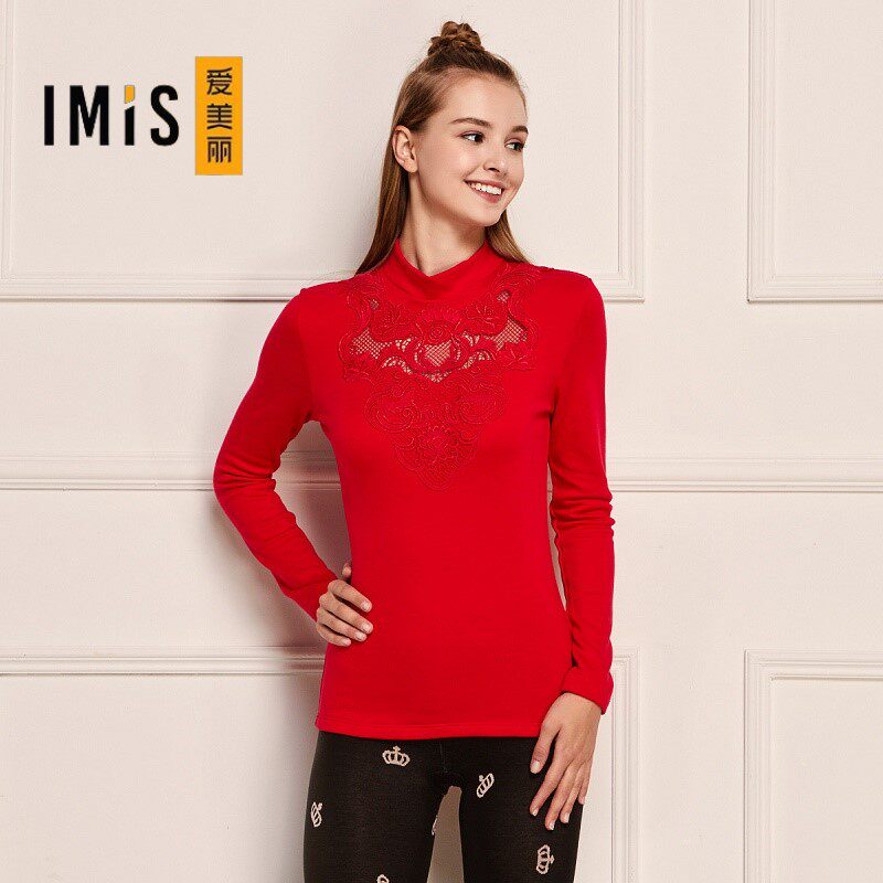 IMIS爱美丽本命年红色蕾丝高领保暖长袖上衣女士保暖内衣IM72AEX2