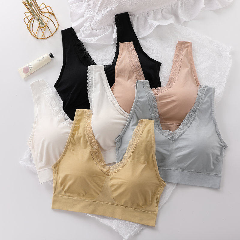 女士内衣美背一体式固定杯胸垫蕾丝吊带内搭乳胶有大码150斤