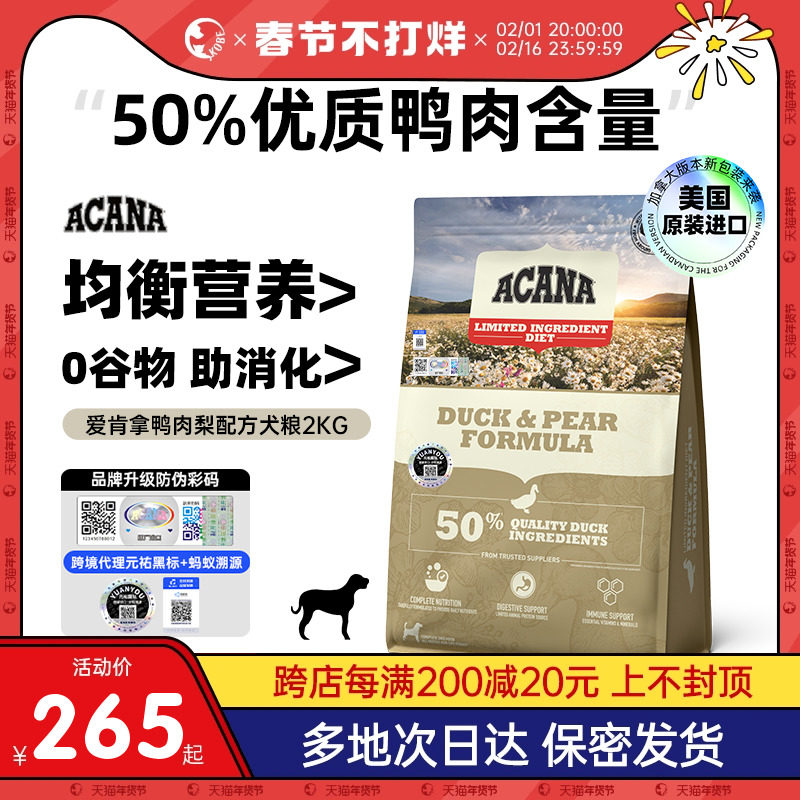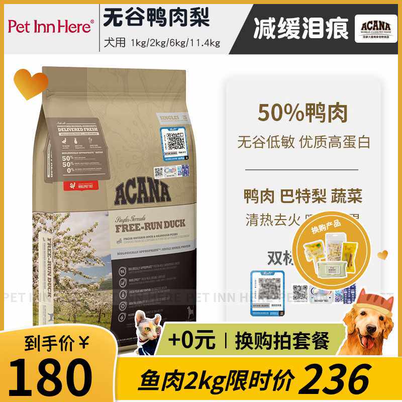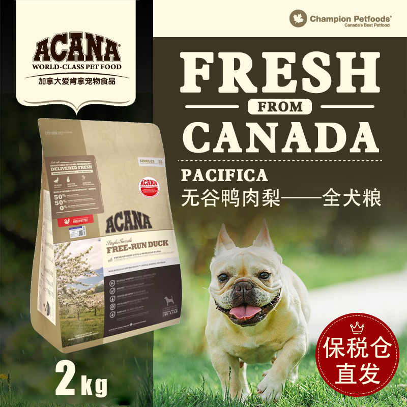 加版美产ACANA爱肯拿鸭肉梨狗粮幼犬粮成犬通用型狗粮十大品牌2kg