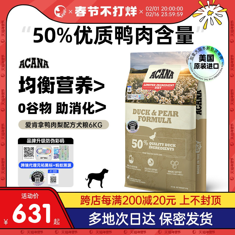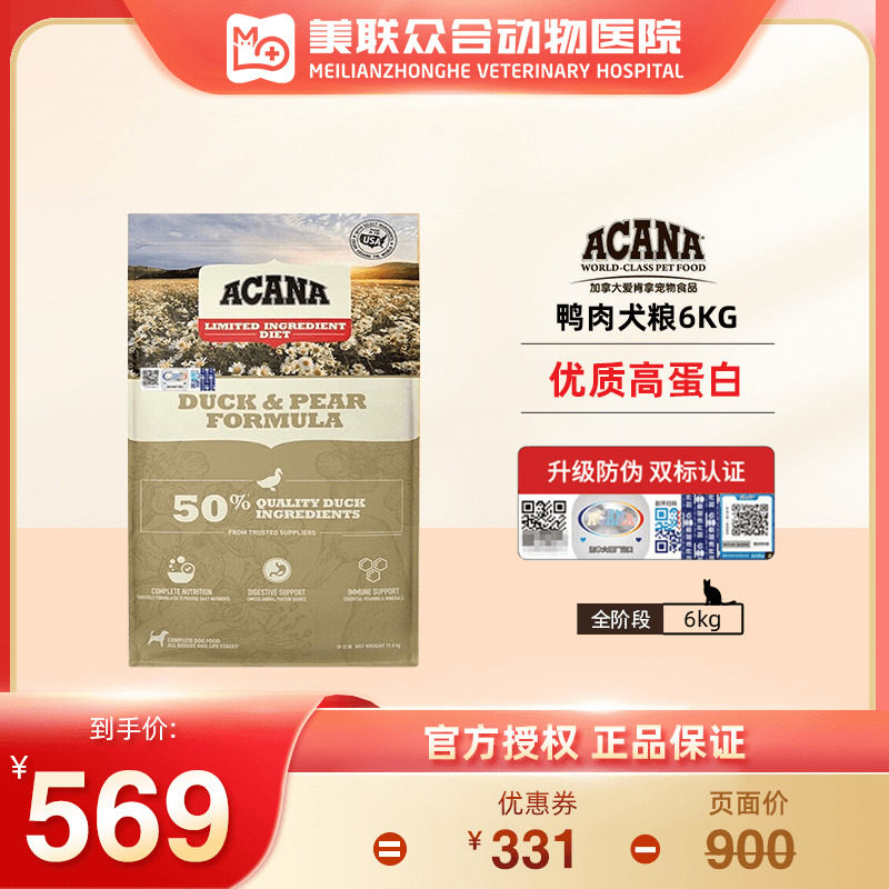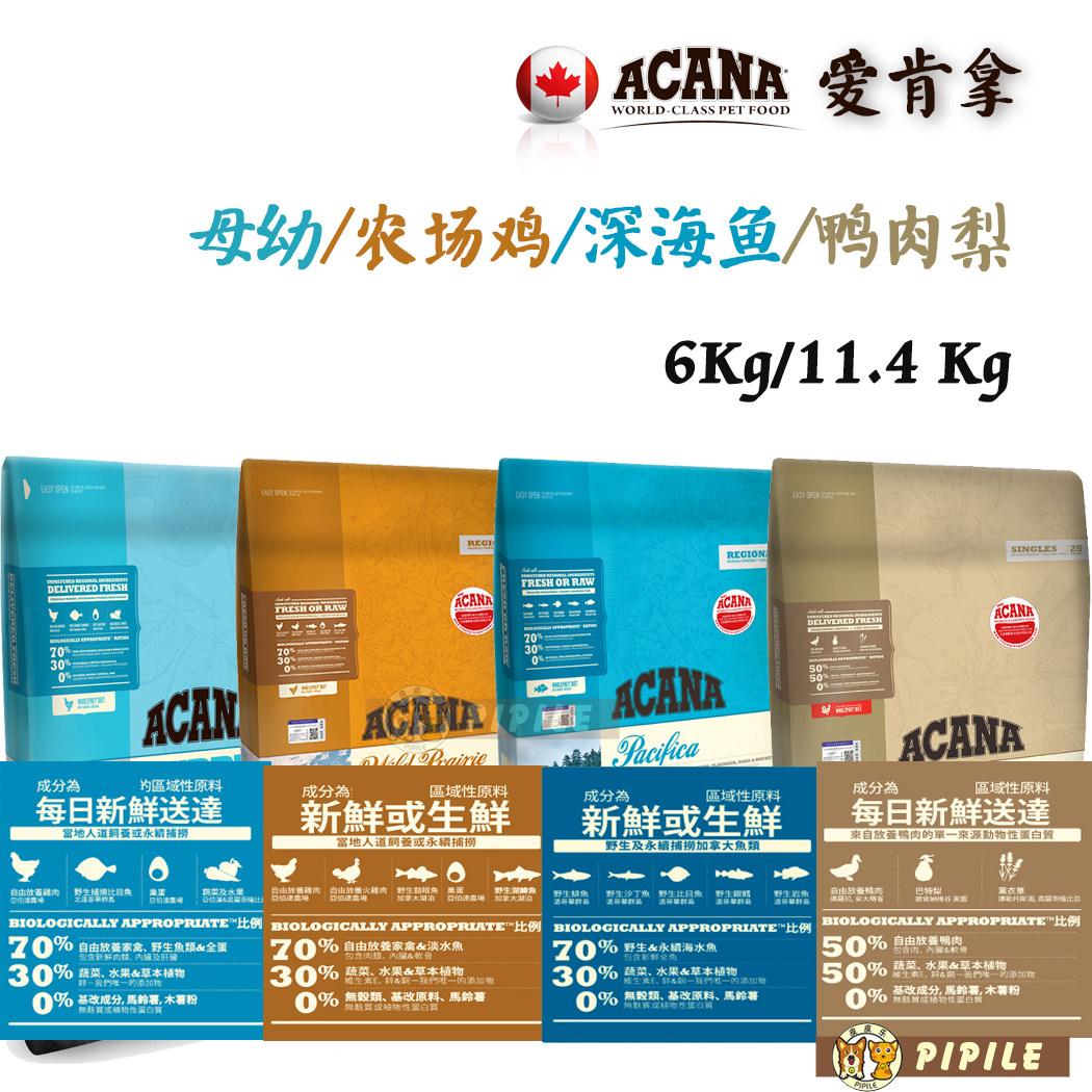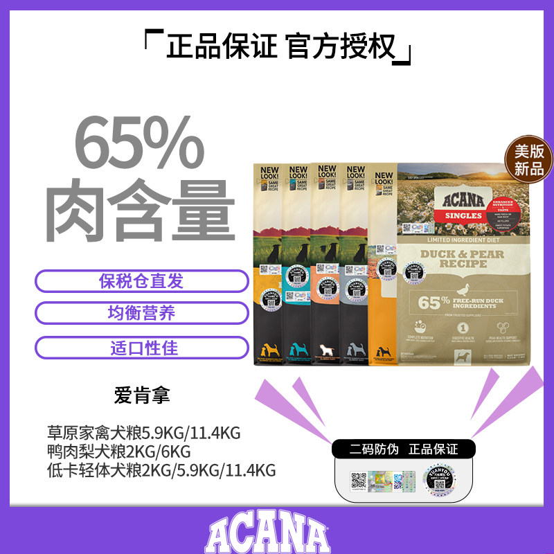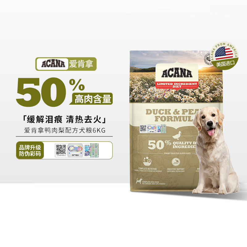 ACANA加版美产爱肯拿鸭肉梨狗粮成幼犬通用进口狗粮十大品牌6kg