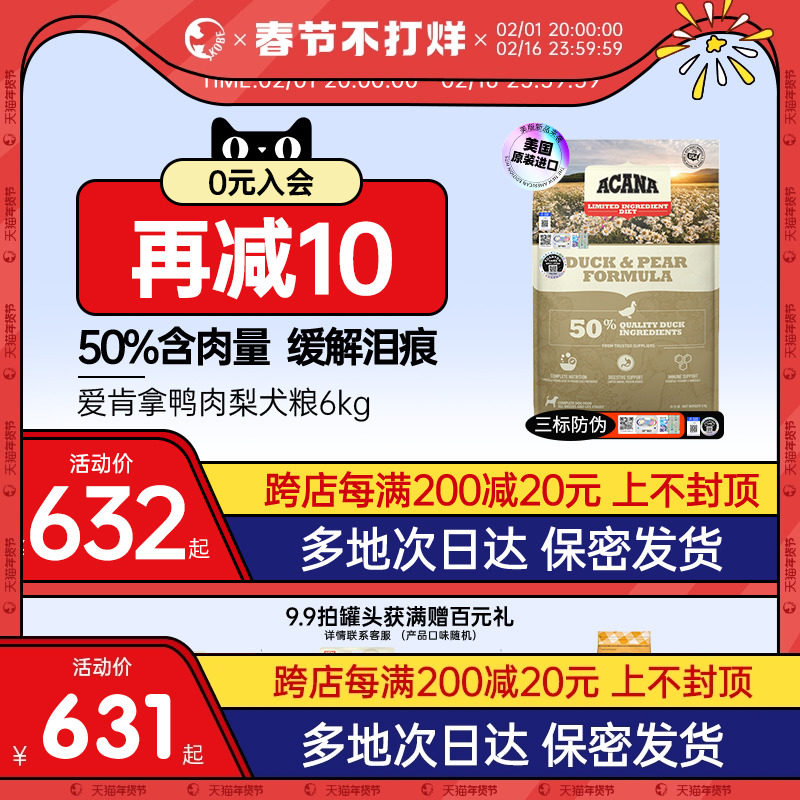 美版ACANA爱肯拿鸭肉梨缓解泪痕进口狗粮无谷通用鸡肉味犬粮6kg