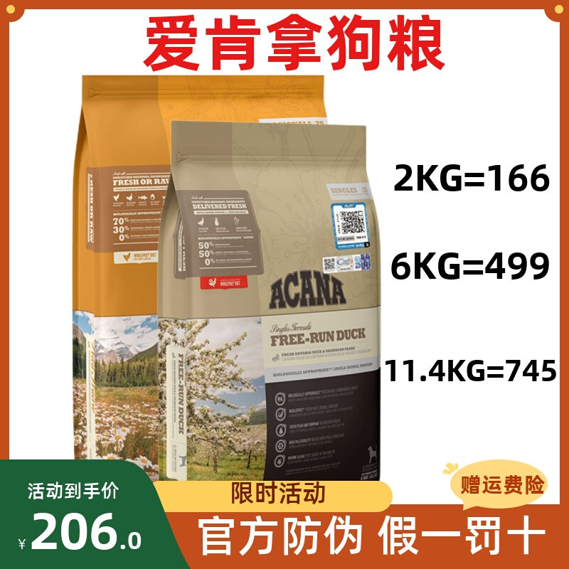 加拿大ACANA爱肯拿狗粮 无谷鸡肉深海鱼鸭肉梨 全犬粮 2kg 11.4kg