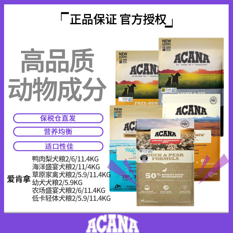 加拿大Acana爱肯拿鸭肉梨深海鱼鸡肉母幼柴犬狗粮农场盛宴犬粮食