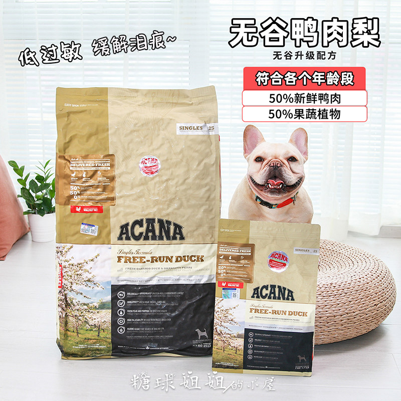 布丁妹妹 ACANA爱肯拿鸭肉梨全价狗粮无谷低敏缓解泪痕进口通用型