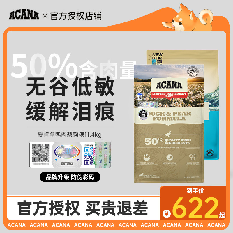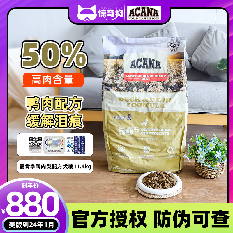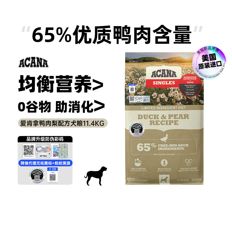 加拿大进口Acana爱肯拿狗粮鸭肉梨低敏清热去火无谷犬粮11.4kg