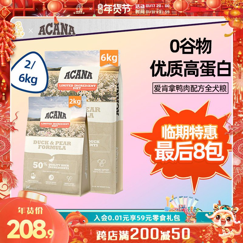 ACANA爱肯拿鸭肉梨进口狗粮无谷低敏全阶段犬粮临期折扣24.6.1