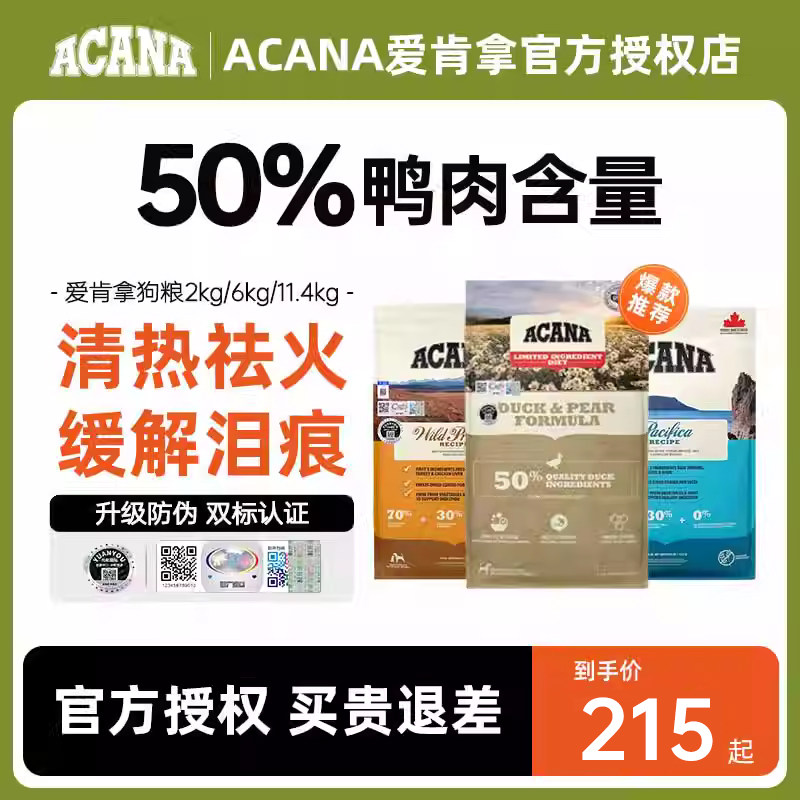 加拿大ACANA爱肯拿鸭肉梨进口狗粮清火去泪痕渴望原味鸡肉全犬粮
