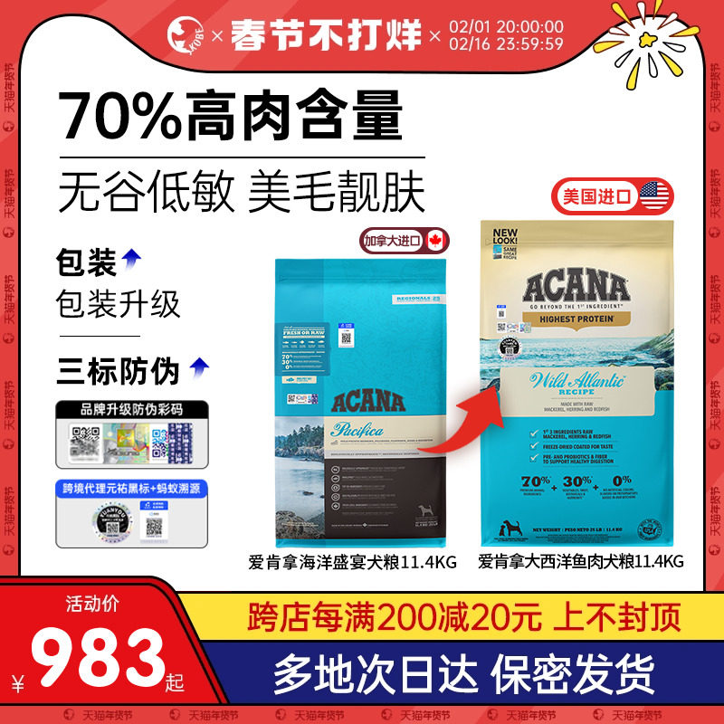 ACANA爱肯拿美国进口大西洋鱼肉海洋盛宴成犬幼犬狗粮11.4kg