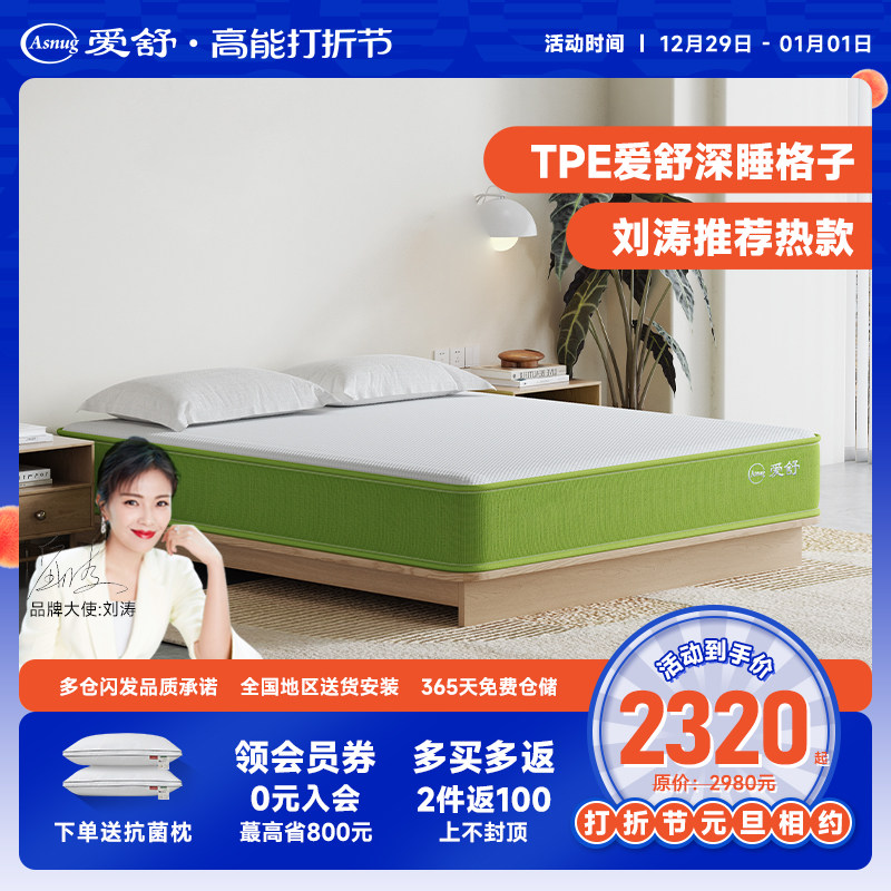 爱舒床垫深睡TPE果胶独立袋装弹簧席梦思1.51.8米软硬适中面可拆