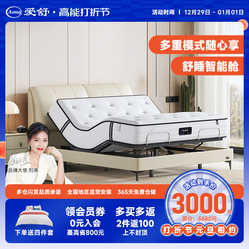 爱舒零重力智能床电动床垫床架多功能升降床家用现代简约主卧皮床